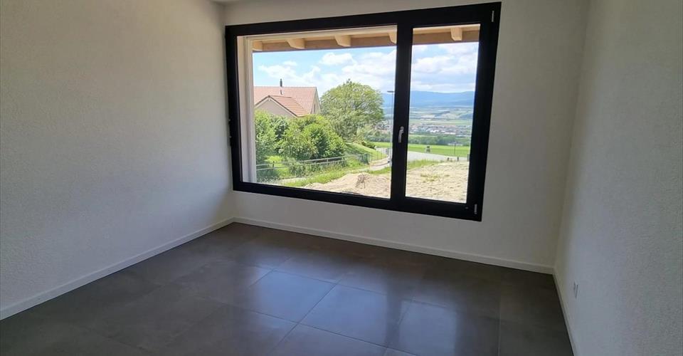 Construction récente, maison de 5.5 pièces sur 3 niveaux Dans un petit village du district du Jura-Nord vaudois, dominant la plaine de l’Orbe. Construction récente. Construction récente, spacieuse maison de 5.5 pièces sur 3 niveaux, comprenant : au rez-de-chaussée, un hall, une cuisine équipée ouverte sur le séjour, une chambre, une douche/wc, une terrasse de 27 m2. Au 1er étage, 3 chambres, 1 salle-de-bains avec douche et wc. Au sous-sol, 1 chambre, un local buanderie non équipé ainsi qu’une grande cave et un local disponible. 2 places de parc extérieures en sus, à Frs. 75.00/place. Visite groupée le jeudi 23 octobre à 14h00. Inscriptions obligatoires auprès de la gérance.