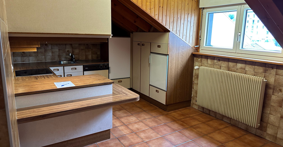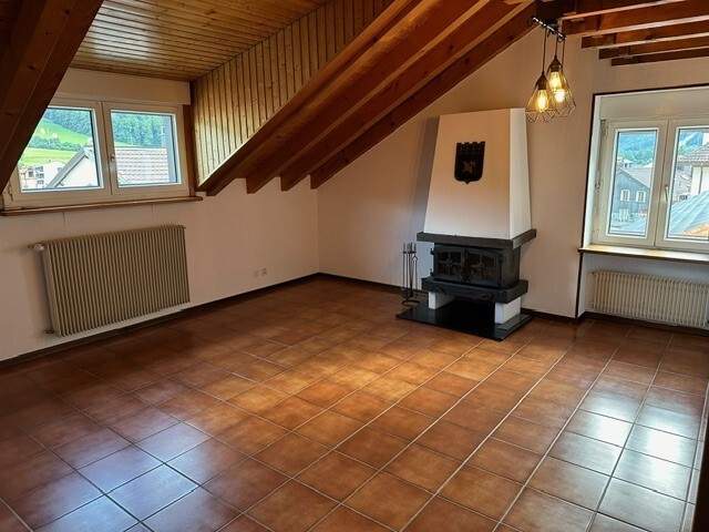 Appartement de 5.5 pièces au 3ème étage comprenant Cuisine séparée et agencée 4 chambres 2 salles de bains, 1x baignoire et une fois cabine de douche Cheminée de salon fonctionnelle Place de parc extérieure en sus à CHF 60.-/mois Libre de suite