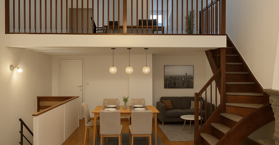 Ce magnifique logement en triplex assimilé à un 5½ pièces au 1er étage compose comme suit : sur le 1er niveau : spacieux hall pouvant même servir de salle à manger cuisine entièrement équipée dont fours à vapeur et traditionnel ainsi que micro-ondes grande chambre parentale avec cheminée cagibi salle de bains/douches/WC avec double lavabo 1 chambre d’enfant ou bureau A l’étage : séjour dans les combles avec cheminée 1 chambre local chaufferie, espace de rangement Une mezzanine d’env. 20 m² complète ce bien ainsi qu’une cave. Loyer mensuel de CHF 2’950.- Charges individuelles en sus Place de parc extérieure et une seconde possibilité de parquer offertes temporairement. Disponible de suite ou à convenir. Possibilité d’installer un lave-linge en sus, à discuter avec les propriétaires. Visites et renseignements : Gérances de LUZE S.A.
