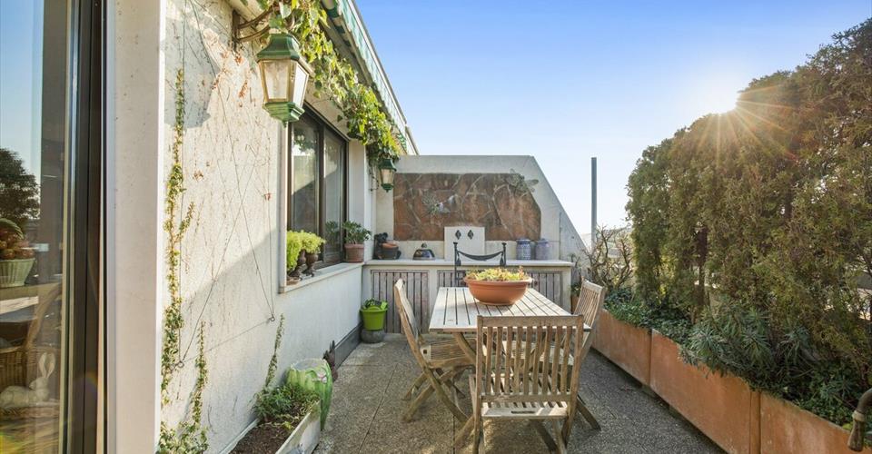Situé au 8ème et dernier étage d’un immeuble de standing, au cœur du quartier prisé de Florissant, ce superbe attique traversant baigné de lumière vous ravira par son impressionnante terrasse en U joliment arborée d’une surface de 145 m² à la vue imprenable. Cet objet rare à la vente, confectionné avec des matériaux de grande qualité, offre de beaux volumes et une belle hauteur sous plafond. Toutes les pièces sont pourvues de grandes baies vitrées avec un accès direct à la terrasse, ce qui atténue la séparation entre extérieur et intérieur. D’une surface PPE de 141 m², la partie jour se compose d’un hall d’entrée avec armoires intégrées, d’un très beau séjour et d’une cuisine entièrement équipée et habitable avec accès sur la terrasse. La partie nuit offre une grande suite parentale avec des rangements sur mesure et une salle de bains attenante complète et d’un dressing. Une seconde chambre ainsi qu’une salle de douche avec hammam et WC complètent l’espace nuit. – Attique traversant – Surf. habitable 141 m² – 8ème et dernier étage – Immeuble de standing – 2 chambres & 2 salles de bains – Terrasse panoramique 145 m² – Lumineux et calme Cet attique conviendra parfaitement à une clientèle désirant profiter d’une vue imprenable. Son cadre privilégié avec ses vastes espaces de vie, son confort unique et son emplacement idéal proche de toutes les commodités font de cet objet un bien très recherché. Une cave et un box viennent parfaire ce bien d’exception.