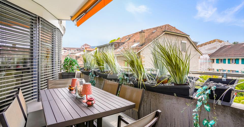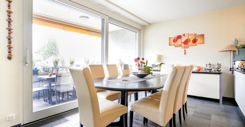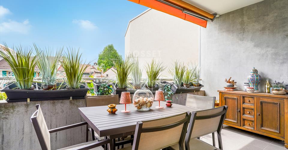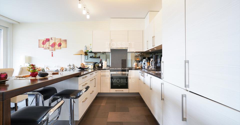 Situé au cœur de la commune recherché de Chêne-Bourgeries, au centre du Vieux-Chêne, ce magnifique appartement de 5 pièces bénéficie d’un emplacement privilégié, au sein d’un environnement urbain, calme et résidentiel, à proximité de l’ensemble des commodités, des transports publics et des écoles. Situé au premier étage d’une petite copropriété construite en 2011, ce bien saura vous séduire par sa surface harmonieusement répartie, à laquelle s’ajoute une agréable terrasse d’environ 15 m², idéale pour profiter pleinement des beaux jours. L’appartement se distribue comme suit : – Un hall d’entrée – Un spacieux séjour / salle à manger avec un accès direct à la terrasse – Une cuisine ouverte entièrement équipée – Trois chambres à coucher – Une salle de bains – Une salle de douche – Un WC visiteurs Grâce à sa configuration traversante, l’appartement se distingue par sa luminosité naturelle et son exposition idéale, garantissant un ensoleillement optimal tout au long de la journée. L’appartement est complété par un box fermé en sous-sol ainsi qu’une cave. Situé dans un quartier résidentiel prisé, ce bien constitue une adresse idéale pour les familles ou les personnes à la recherche d’un cadre de vie paisible, tout en restant proche des commodités. N’hésitez pas à nous contacter afin de convenir d’une visite.