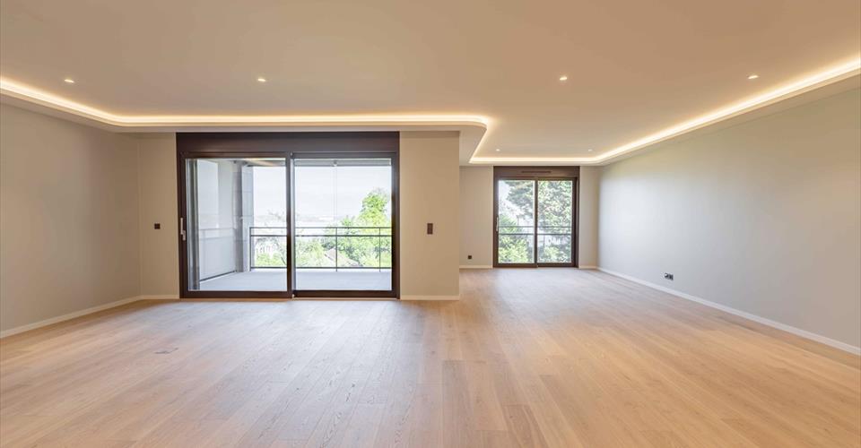 Cet appartement neuf et luxueux de 245 m2 pondérée est équipé d’espaces extérieurs privés tels qu’un jardin de 176m2, une loggias et une terrasse, permettant de profiter au mieux de la vue sur le lac. C’est une adresse de prestige qui offre un cadre de vie exclusif. Découvrez l’élégance et le raffinement d’un style de vie exclusif au Domaine des Princes, niché sur le prestigieux coteau de Cologny, offrant une vue imprenable sur le majestueux lac Léman. Une occasion unique de posséder un appartement de 5 pièces en rez-de-jardin, conjuguant espace, confort et prestations luxueuses. Caractéristiques de l’Appartement : Surface pondérée : 245 m2 Jardin privatif : 176 m2 Loggia spacieuse : 25 m2 3 Chambres à coucher en suite avec salle de bain et dressing 1 buanderie avec office 3 places de parking Chauffage au sol réglable individuellement Rafraîchissement par les sols pour un confort optimal Domotique eSmart Aménagements Exceptionnels : L’appartement s’ouvre sur un jardin privé, invitant à la détente et à la contemplation de la vue panoramique sur le lac Léman. La loggia spacieuse offre un espace extérieur supplémentaire, parfait pour des moments de convivialité ou pour se ressourcer en toute intimité. Espace de Bien-être Haut de Gamme : Le Domaine des Princes propose un espace de SPA de luxe, équipé d’un fitness dernière génération (Technogym), d’un salon de massage, d’un hammam apaisant, d’un sauna revitalisant, de douches sensorielles, de divers sanitaires vestiaires offrant une expérience de bien-être inégalée. Un havre de tranquillité pour se détendre après une journée bien remplie. Style Architectural Moderne et Élégant : L’immeuble HPE se distingue par son design moderne et épuré, avec des pierres naturelles qui ornent la façade, créant une esthétique contemporaine et raffinée. Les intérieurs spacieux et lumineux s’harmonisent parfaitement avec le parc finement paysagé de style toscan. 3 places de parking complètent ce bien (CHF 100’000.- par place, inclus dans le prix) Disponible de suite, possibilité de visiter sur rendez-vous uniquement