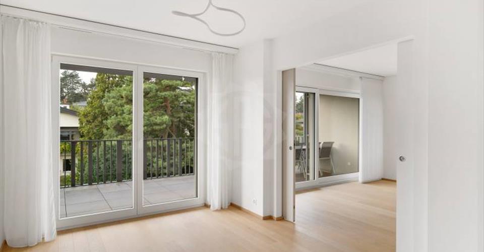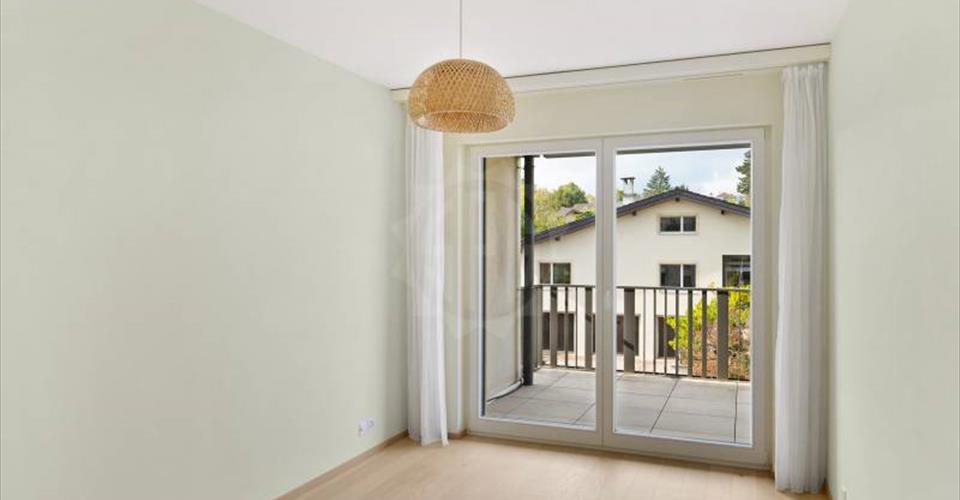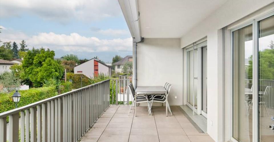 – Baigné de lumière – Cuisine équipée ouverte sur séjour – Cave – Excellent état d’entretien – Balcon – 2 parkings couverts Dans un quartier résidentiel paisible et verdoyant, à seulement 500 mètres d’un supermarché Coop et des commerces du centre de Bernex (boulangerie, pharmacie, etc.), cette élégante copropriété construite en 2017 et labellisée Minergie, accueille ce bel appartement de 5 pièces en excellent état. Baigné de lumière, ce bien d’une superficie de 122 m2 PPE offre un cadre de vie à la fois moderne et chaleureux. Il se compose d’une vaste pièce à vivre avec une cuisine ouverte, entièrement équipée, donnant sur le salon / salle à manger. Un couloir mène à l’espace nuit, composé de trois chambres à coucher. L’une d’elles, attenante au séjour et communicante grâce à une double porte coulissante, offre une grande flexibilité d’aménagement : elle peut être utilisée comme chambre, ou encore comme salon, permettant ainsi de créer un espace de vie double avec un salon distinct de la salle à manger. L’appartement dispose également d’une salle de bains et d’une salle de douche. Le séjour et deux des chambres s’ouvrent sur un grand balcon de 28 m², exposée plein sud. Les finitions soignées (parquet en bois clair, éclairage encastré, nombreux rangements intégrés) ainsi que les larges baies vitrées apportent confort, élégance et luminosité à l’ensemble. Une grande cave et deux places de stationnement en sous-sol complètent ce bien de qualité.