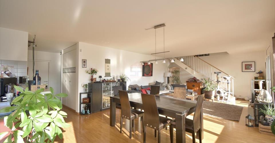 Situé dans un environnement calme et recherché, ce magnifique duplex offre un cadre de vie exceptionnel alliant espace, luminosité et confort. Caractéristiques principales : – Surface généreuse avec des combles de 114 m² et une hauteur sous plafond de 4 mètres, offrant de multiples possibilités d’aménagement selon vos besoins. – Trois belles chambres, idéales pour une famille ou un espace bureau. – Espace de vie lumineux avec une cuisine ouverte sur la salle à manger et le séjour, parfait pour des moments de convivialité. – Deux salles de bains, assurant confort et praticité au quotidien. – Deux balcons, dont un spacieux de 19.6 m² exposé plein sud, offrant une vue dégagée et un ensoleillement optimal. – Deux places de parking : une en intérieur et une en extérieur en sus du prix de vente. – Une cave pour un espace de rangement supplémentaire. Un emplacement idéal : – À proximité des transports en commun et des commodités du centre-ville d’Eysins. – Un cadre paisible tout en étant proche de Nyon et de l’axe autoroutier. – Ce bien unique saura séduire ceux en quête d’un logement alliant espace, confort et qualité de vie. Contactez-nous dès maintenant pour organiser une visite et découvrir tout le potentiel de ce magnifique duplex ! Je vous invite à visiter le bien en cliquant sur ce lien : https://envisite.net/vtour/fr/kmzuca