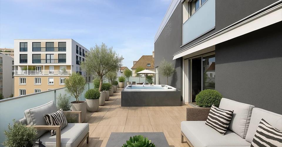 Situé dans le quartier recherché de Saint-Jean, à seulement cinq minutes à pied du lac, cet attique bénéficie d’un emplacement privilégié dans une rue calme, tout en étant à proximité immédiate des commodités. Construit en 2013, ce bâtiment contemporain s’intègre avec élégance dans un îlot mêlant façades protégées du début du XXème siècle, alliant ainsi caractère et modernité. L’attique profite d’une superbe terrasse en U qui entoure toute la surface et dessert chaque pièce. Cette configuration crée une circulation naturelle entre intérieur et extérieur et apporte une belle luminosité dans chaque espace. La pièce principale réunit un grand salon, une cuisine ouverte entièrement équipée ainsi qu’un espace salle à manger, offrant un cadre de vie agréable et fonctionnel. La partie nuit dispose de deux chambres en suite, chacune avec dressing et salle de bain privative, assurant confort et intimité. Un box fermé pouvant accueillir deux véhicules ainsi qu’une cave complètent ce bien. Avec sa situation centrale dans une rue paisible, son architecture contemporaine, sa grande terrasse et ses prestations soignées, cet attique représente une opportunité rare pour les personnes à la recherche d’un bien de qualité au coeur de Genève.