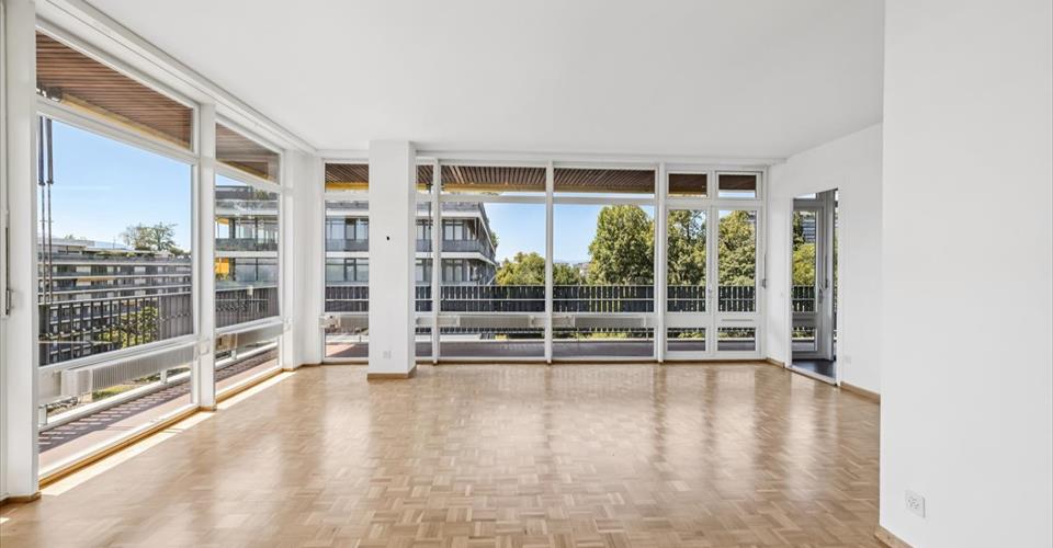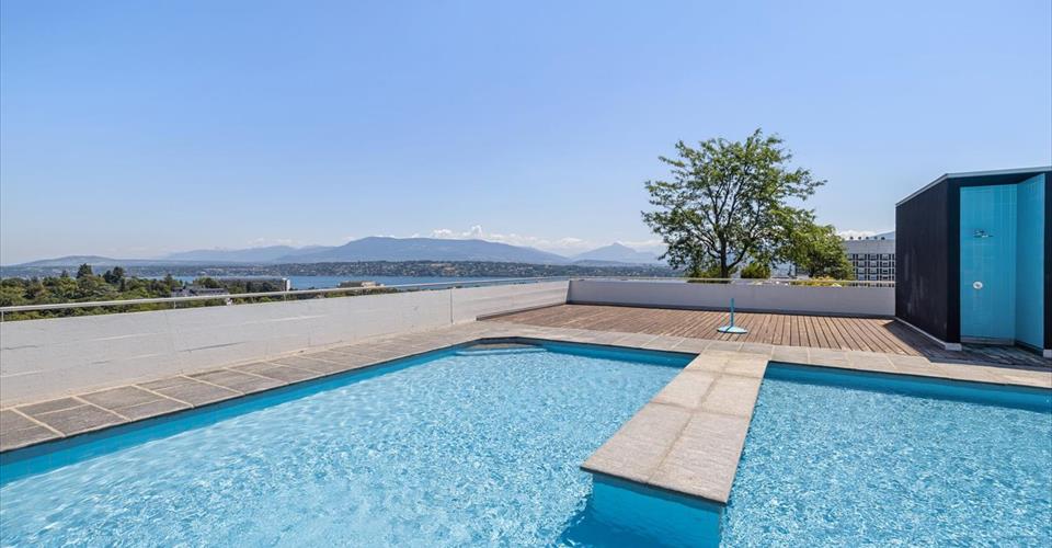Situé au c?ur du très prisé quartier de Budé, dans le secteur résidentiel et cosmopolite de Petit-Saconnex, ce splendide appartement allie confort, luminosité et situation privilégiée. À seulement 10 minutes du centre-ville de Genève et à proximité immédiate des institutions internationales, il offre un cadre de vie rare, calme et verdoyant, tout en étant proche des commodités (commerces, écoles, transports, restaurants). Au 5? étage d?un immeuble de standing parfaitement entretenu, ce bien de haute performance énergétique séduit dès l?entrée par sa distribution fluide et ses généreux volumes baignés de lumière naturelle. L?appartement comprend : Un hall d?entrée avec armoires encastrées, Un vaste séjour et une salle à manger avec de grandes baies vitrées, Une cuisine séparée, entièrement équipée, Un WC visiteurs, Trois chambres à coucher, toutes avec accès direct au balcon, Deux salles d?eau privatives (douche et baignoire). L?atout majeur : un balcon panoramique de 45 m² qui entoure l?appartement et offre une vue exceptionnelle sur le lac Léman, le Jet d?eau. En complément, les résidents bénéficient d?un accès exclusif à une magnifique piscine sur le toit de l?immeuble, avec vue imprenable sur le lac, idéale pour se détendre en toute intimité. Une cave et une place de parking privative en sous-sol complètent ce bien. À seulement quelques minutes du centre-ville et à deux pas des organisations internationales (ONU, OMS, CICR?), Budé offre un environnement paisible, verdoyant et sécurisé, idéal tant pour les familles que pour les actifs internationaux. On y trouve : Des commerces de proximité, Des écoles de qualité, Des espaces verts propices à la détente, Ainsi qu?une excellente connexion aux transports publics, permettant de rejoindre rapidement l?aéroport, la gare ou le centre-ville.