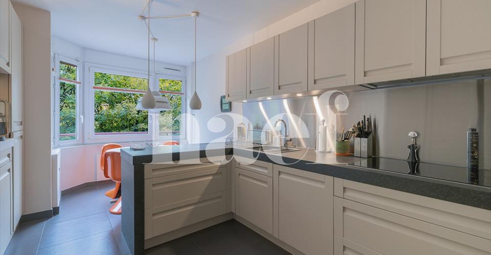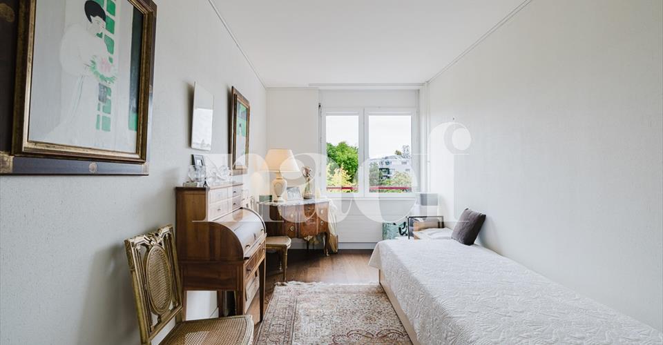 Cet appartement de 5 pièces et de 142m2 PPE est idéal pour une famille. Il allie confort, charme et bien-être, et bénéficie d’un étage élevé offrant une belle luminosité. L’emplacement est situé dans un environnement paisible, tout en étant proche des commerces, des écoles et des commodités du quartier. L’espace jour se compose d’un agréable salon de 32 m² ainsi que d’une cuisine entièrement équipée de 16 m². Le hall principal accueille un WC visiteurs avec lavabo. La partie nuit comprend trois belles chambres à coucher : 2 chambres de 17 m² et de 13 m² partagent une salle de douche équipée d’un espace buanderie (machine à laver). 1 suite parentale de 20 m² avec sa propre salle de bain. L’appartement est en très bon état. Il a été réalisé avec des matériaux de qualité et présente de très belles finitions. À l’extérieur, un généreux balcon orienté plein sud permet de profiter pleinement des belles journées ensoleillées. En annexe, l’appartement dispose d’une cave ainsi que de deux places de parking intérieures, incluses dans le prix de vente.