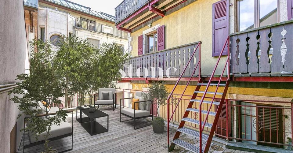 Situé dans le quartier très recherché des Eaux-Vives à deux pas du lac et de toutes les commodités, cet appartement duplex de 195 m² allie cachet, confort et beaux volumes. Il se compose ainsi : Le premier niveau : Un hall d’entrée. un wc visiteurs, un spacieux séjour avec une belle hauteur sous plafond, une cuisine équipée ouverte sur la salle à manger avec placards et rangements sur mesure. Accès direct à une terrasse de 31 m² offrant un bel espace extérieur A l’étage : Une spacieuse masterbedroom avec accès à un grand balcon et avec sa salle de douche privative et dressing. Deux chambres avec dressing et une salle de douche commune. Un wc et un emplacement pour la colonne de lavage. Cet appartement situé dans un immeuble de caractère bénéficie d’un emplacement privilégié à proximité immédiate des transports, des commerces, du Parc La Grange et du bord du lac. Un bien rare à découvrir sans tarder !