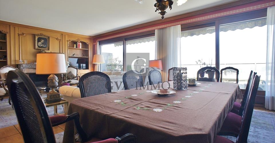 Situé en plein cœur du quartier prisé de Champel, au sein d’une résidence de grand standing, superbe appartement en attique profitant d’une spectaculaire vue panoramique sur la ville et les montagnes. L’appartement d’une surface PPE pondérée de 174 m2, s’ouvre sur une belle entrée, qui mène à un superbe salon avec cheminée, une belle salle à manger et une grande cuisine entièrement équipée. Ces pièces de réception profitent d’un accès à une superbe terrasse exposée Ouest, offrant une superbe vue panoramique. Un WC visiteurs complète l’espace jour. Côté nuit, l’appartement propose une grande Master bedroom avec belle salle de douche et accès terrasse Est, ainsi qu’une seconde chambre avec accès terrasse et une autre salle de bain. Une belle cave et un parking intérieur viennent compléter cet ensemble de standing. Objet rare à la vente !