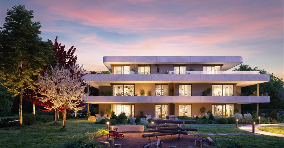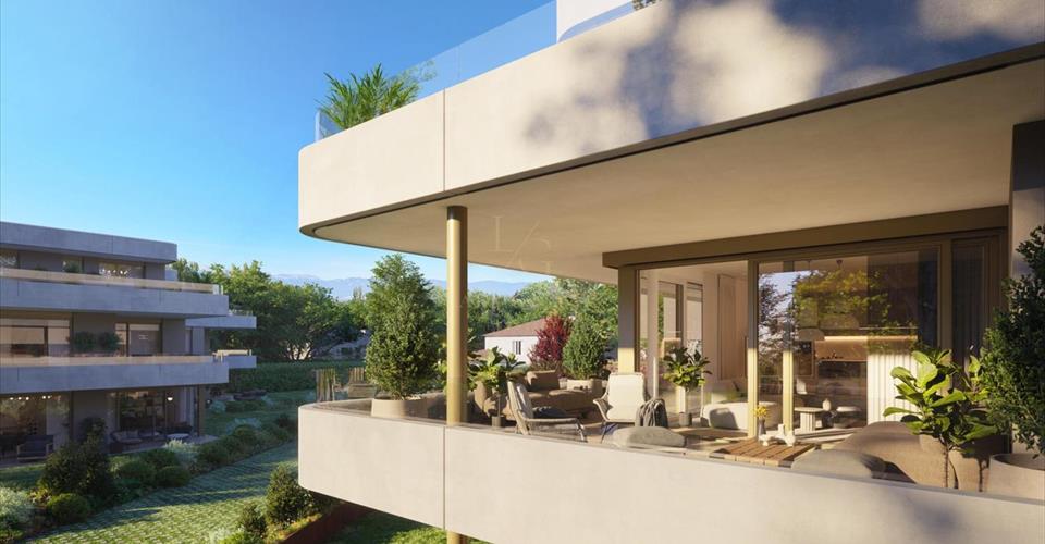 SITE INTERNET – https://jardindescrets.ch/ PRESENTATION ET SITUATION La Résidence “Jardin des Crêts” se situe dans le quartier résidentiel du Grand-Saconnex. Située sur la rive droite de Genève, en plein coeur de la Genève Internationale, proche des missions et ambassades, découvrez cette nouvelle résidence de standing vous invitant à une reconnexion avec la nature, dans un environnement exceptionnel avec un parc de plus de 5’000 m2, faiblement densifié (coefficient 0.3). Avec sa position au sommet d’une crête et au milieu des arbres centenaires, vous pourrez profiter du calme tout en étant à proximité immédiate des commodités telles que écoles, commerces et transports publics (à une minute à pied de l’arrêt de bus Grand-Saconnex John Knox). L’Aéroport International de Genève, le lac et le centre-ville se trouvent à quelques minutes seulement en voiture. ARCHITECTURE & APPARTEMENTS ENTRE 146.5 M2 ET 227 M2 PONDERES L’expression architecturale, en cohésion avec la nature, se distingue par des façades habillées en pierre naturelle et minérale ainsi que par des gardes corps en verre surplombant ainsi la verdure. Les matériaux ont été minutieusement choisis et chaque bâtiment répond à un standard de très haute performance énergétique (Minergie THPE), avec une production de chaleur assurée par des pompes à chaleur air-eau et une toiture totalement équipée de panneaux photovoltaïques. Le projet comporte 2 bâtiments de 5 appartements chacun (A & B) ainsi qu’un parking souterrain commun. Chacun des appartements jouit d’une très belle luminosité et d’une splendide et vaste terrasse couverte invitant les résidents à profiter au maximum de la vie en plein air, tout en étant à l’abri des regards des logements voisins. Les bâtiments A & B sont répartis de la façon suivante: Rez-de-chaussée: 2 x 5 pièces Premier étage: 2 x 5 pièces Attique: 1 x 6 pièces Les appartements du rez-de-chaussée profitent d’un magnifique jardin de 100 m2 orienté S/O, en plus d’une terrasse couverte. Chaque appartement bénéficie, en annexe, d’une grande cave (20 m2) ainsi que de deux places de parking intérieures (comprises dans le prix de vente). Permis de construction en force – Livraison courant septembre 2026
