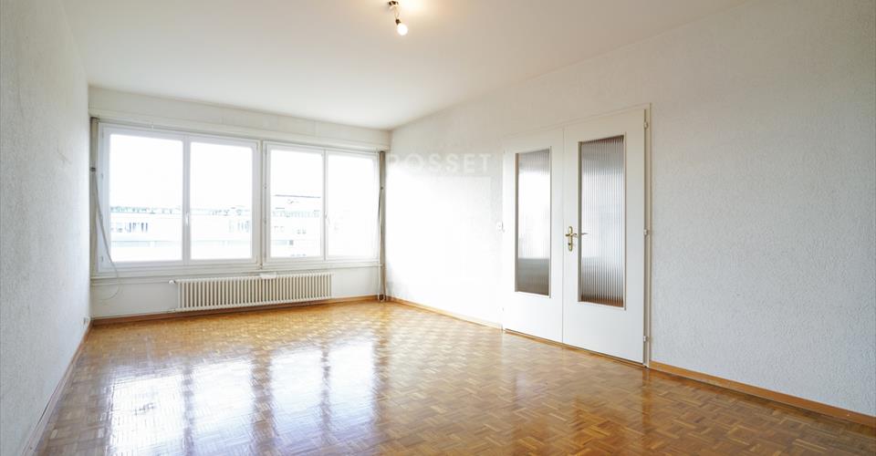 En exclusivité Venez découvrir, ce spacieux appartement de 5 pièces qui est situé au 6ème étage d’un bel immeuble, construit dans les années 70. En plein centre de Meyrin, il est a proximité immédiate de toutes les commodités. D’une surface d’environ 100 m² il est idéalement orienté et bénéficie d’une belle luminosité. Il se compose d’un séjour avec salle à manger ainsi que d’une cuisine entièrement équipée et fermée donnant accès au balcon. La partie nuit dispose de trois chambres à coucher, d’une salle de douche ainsi que d’un wc visiteur. Un box ainsi qu’une cave complètent cet ensemble. Sa situation centrale permet un accès aisé aux commerces, aux écoles, à l’aéroport, au centre ville et aux transports. A visiter sans tarder !