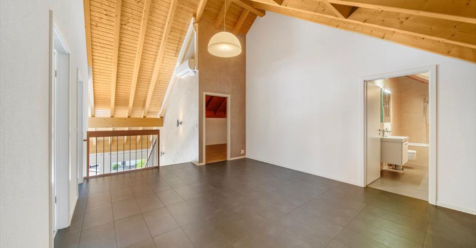 Découvrez cet exceptionnel appartement duplex de 5 pièces dans le charmant village de Noville. Construite en 2016, cette maison certifiée Minergie offre 153 m² d’espace de vie répartis sur deux étages, idéal pour ceux qui recherchent un style de vie moderne et économe en énergie. Caractéristiques principales : • Intérieurs spacieux : Profitez des généreux espaces de vie avec leurs plafonds voûtés en bois, leurs murs blancs et leurs élégants revêtements des sols. • Vues : De grandes fenêtres offrent un panorama pittoresque sur les montagnes, laissant la nature s’inviter chez vous. • Cuisine moderne : Un rêve pour tout chef avec des plans de travail en granit, des appareils électroménagers et un lave-vaisselle pour un nettoyage facile. • Salles de bains : Trois salles de bains bien équipées pour un confort optimal. • Espace de vie extérieur : Un balcon privé de 25m2 idéal pour dîner en plein air. • Parking : le garage est à CHF 40 000 et une place de parking à CHF 15 000. Équipements de l’immeuble : • Accès par ascenseur pour un confort optimal • Environnement adapté aux enfants • Certification Minergie pour l’efficacité énergétique et le confort Situation et environnement : Situé dans un quartier calme, cet appartement offre un cadre de vie paisible. Ensoleillé en été, il offre une lumière naturelle abondante. Idéalement situé à proximité des transports en commun, l’arrêt de bus « Pré des Fourches » est à seulement 3 minutes à pied. Pour vos besoins quotidiens, un supermarché ALDI est à seulement 2 minutes à pied, tandis que la pharmacie Sun Store est à 9 minutes. L’appartement est également relativement proche d’une gare, offrant un accès facile aux autres quartiers. Ce duplex à Noville est une opportunité idéale pour ceux qui recherchent un logement moderne et confortable dans un cadre serein avec un accès facile aux commodités. Ne manquez pas cette opportunité d’en faire votre nouveau chez-vous !