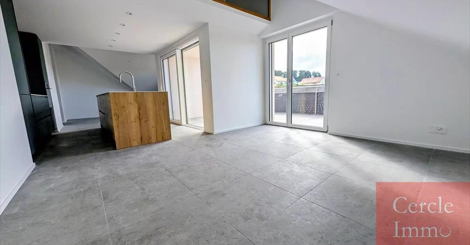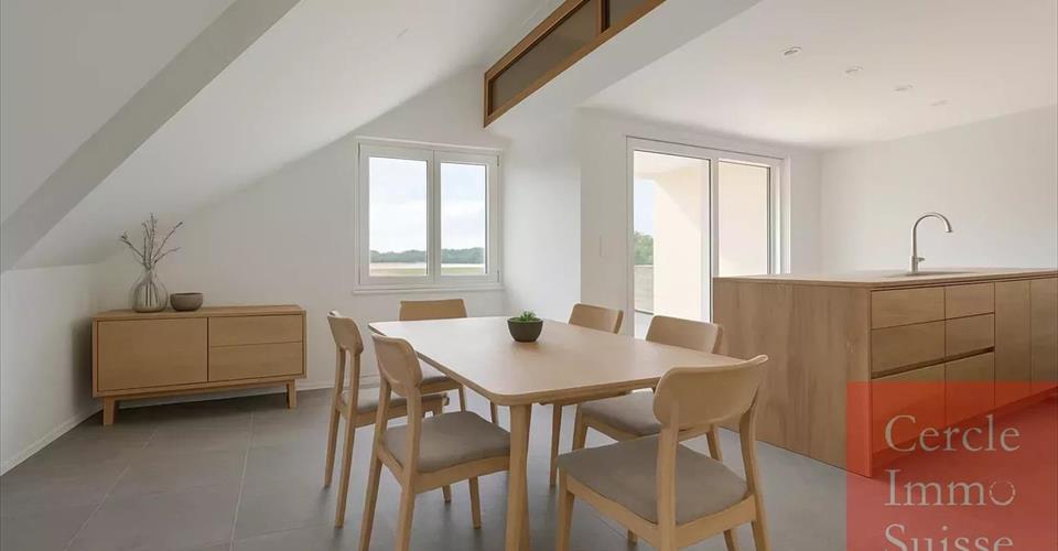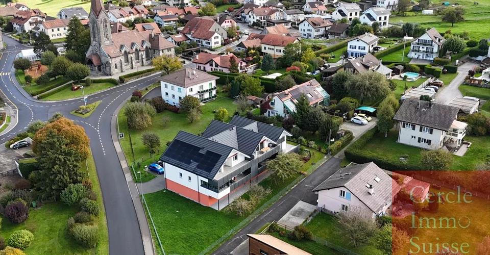 Cette nouvelle réalisation sur deux niveaux abrite 5 logements en PPE. Bâtiment contemporain de standing avec notamment triple vitrage, panneaux photovoltaïques, pompe à chaleur, chauffage au sol et ascenseur. Un garage privé, une buanderie privée ainsi qu’une cave privée complètent cet appartement. Finitions haut de gamme avec des matériaux de qualité. Disponible de suite