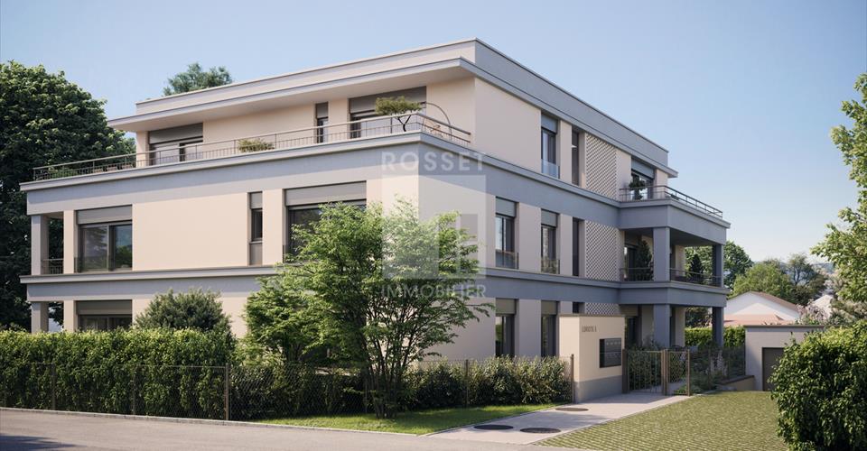 Ouverture du chantier Livraison prévue fin 2026 Situé dans un environnement résidentiel calme et verdoyant au cœur de Thônex, le projet « Parc des Loriots » propose 8 appartements contemporain allant du 4 au 5 pièces conçus selon les normes HPE (Haute Performance Énergétique). La résidence adopte une architecture contemporaine, sobre et élégante, mettant en valeur de belles surfaces extérieures balcons, terrasses ou jardins privatifs ainsi que de grandes ouvertures qui favorisent une luminosité naturelle abondante et offrent des vues dégagées. Le bâtiment, orienté plein sud, donne sur un vaste jardin arboré commun, garantissant un cadre de vie serein et verdoyant. Alliant design contemporain, confort moderne et performance énergétique, ce projet bénéficie d’une situation idéale, à seulement quelques minutes du centre-ville de Genève. Il offre une excellente accessibilité, tant en voiture qu’en transports publics, ainsi qu’une proximité immédiate avec les écoles et les commerces. L’appartement de 5 pièces d’une surface PPE de 129 m² se distribue comme suit : La partie jour : – Un grand hall d’entrée – Une cuisine entièrement équipée et ouverte sur la partie jour – Un grand séjour avec salle à manger ainsi qu’un accès à la terrasse privative de 65 m² La partie nuit : – D’une belle suite parental avec sa salle de douche attenante – De deux belle chambres à coucher – une salle de bains – un wc visiteurs À l’extérieur, la terrasse spacieuse donne sur un parc arboré commun, un véritable havre de paix en pleine nature. Deux places de parking en sous-sol ainsi qu’une cave complètent ce bien. (CHF 100’000.- en supplément) Prestations & finitions personnalisables : Chaque appartement est livré avec un descriptif technique détaillé et des prestations de qualité, avec possibilité de personnalisation. Cuisine : CHF 40’000.- Sanitaires : CHF 35’000.- Ce projet allie parfaitement qualité de vie, confort moderne et respect de l’environnement, offrant un cadre idéal pour les familles. Le permis est en force et les travaux débuteront à la fin de l’année 2025. Ne manquez pas cette opportunité unique d’acquérir un appartement d’exception à Thônex, à deux pas de Genève. Contactez-nous dès maintenant pour plus d’informations.