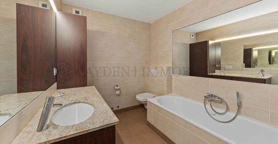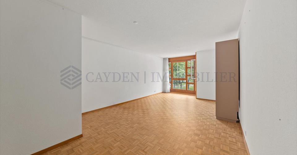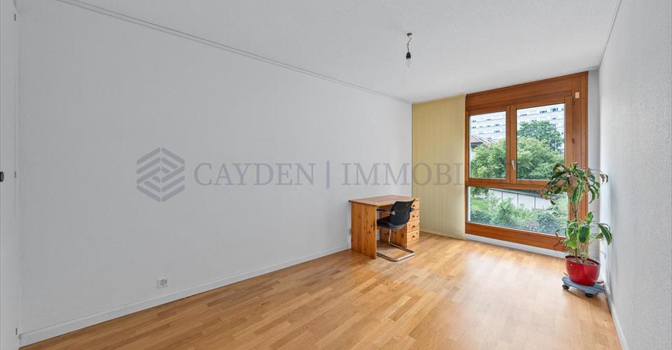 À seulement 150 m du premier arrêt de bus et à 400 m de la gare de Chêne-Bourg, Cet agréable appartement de 5 pièces, lumineux et bien agencé, se situe dans une joli résidence avec ascenseur. Il est agencé comme suit : – Un hall – un wc visiteurs – Une grande cuisine équipée avec coin repas – Un salon – Un dégagement – Une chambre masteur avec rangements intégrés (possibilité d’ouvrir sur le séjour) – Deux chambres dont une avec rangements – Une salle de bains avec wc – Une salle de douche avec buanderie – Une cave – Un garage en sous-sol (box fermé) Caractéristiques : – Charges mensuelles 2024 : 602 chf (charges copro, chauffage, eau chaude, eau froide et fonds de rénovation inclus) – Chauffage central au mazout, chauffage au sol (chaufferie commune) – Panneaux solaires pour eau chaude – Panneaux photovoltaïques pour l’électricité des communs. – Stores électriques – Rénovation en 2013 (Cuisine, salle de bains, peintures complètes, parquets) – fonds de rénovation environ 230 000 CHF – Toiture refaite il y a 2 ans,