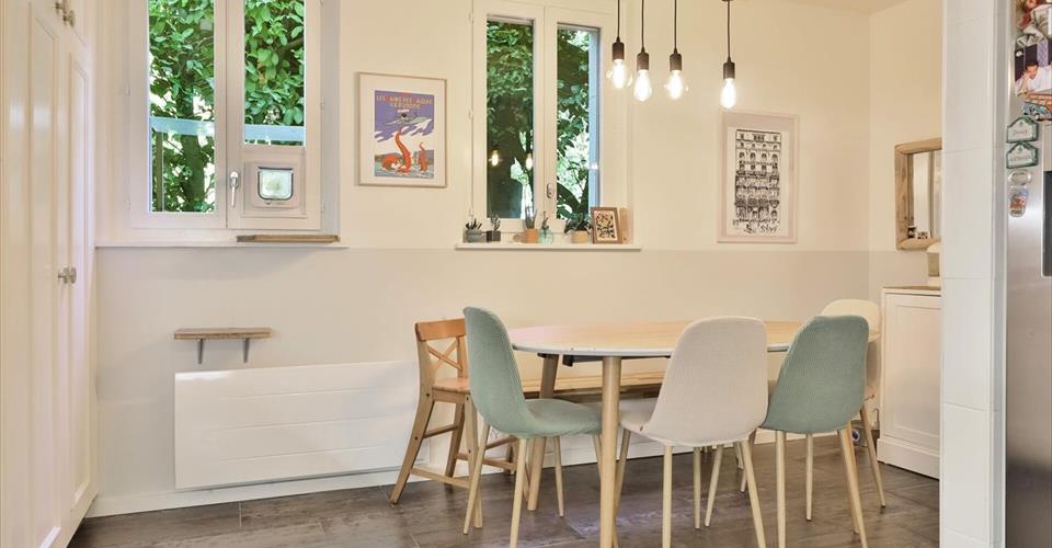 Spacieux appartement 5 pièces avec véranda Situé dans un quartier résidentiel paisible et verdoyant, ce bien se trouve au centre du hameau de Villette, rattaché à la commune de Thônex, réputée pour la rareté et la forte demande de ses biens immobiliers. Cet appartement de 5 pièces se trouve au rez-de-chaussée surélevé d’un petit immeuble charmant et bien entretenu. Traversant et idéalement orienté, il offre une belle luminosité naturelle tout au long de la journée ainsi que des volumes généreux. L’appartement dispose d’une agréable pièce de vie avec cheminée, prolongée par une véranda de 22m2 habitable, qui bénéficie d’un accès extérieur direct. La cuisine entièrement équipée comprend un espace repas convivial et l’agencement intérieur propose deux chambres avec rangements intégrés, une salle de bains complète ainsi qu’un WC visiteurs. Construit au début des années 1980, le bien a été régulièrement entretenu. La propriété inclut également une cave, deux espaces de rangement et une place de parking intérieure. Ce bien se distingue par sa situation idéale à proximité immédiate des transports en commun, des écoles, commerces et restaurants, tout en étant préservé de l’agitation urbaine. Une opportunité rare dans un secteur très recherché. Nous sommes à votre disposition pour tout renseignement complémentaire et pour organiser une visite. ————— Located in a peaceful and green residential area, this property is situated in the heart of the hamlet of Villette, part of the municipality of Thônex, which is renowned for the rarity and high demand of its real estate offerings. This 5-room apartment is on the elevated ground floor of a charming and well-maintained small building. Benefiting from a dual aspect and ideal orientation, it enjoys abundant natural light throughout the day, as well as generous volumes. The apartment features a pleasant living room with a fireplace, extended by a 22 m² habitable veranda, which provides direct outdoor access. The fully equipped kitchen includes a welcoming dining area, and the layout offers two bedrooms with built-in storage, a full bathroom, and a guest toilet. Built in the early 1980s, the property has been regularly maintained. It also includes a cellar, two storage rooms, and an indoor parking space. This property stands out thanks to its ideal location, in immediate proximity to public transport, schools, shops, and restaurants, while still being sheltered from urban noise. A rare opportunity in a highly sought-after area. We remain at your disposal for any further information and to arrange a viewing.