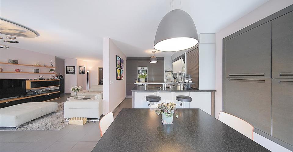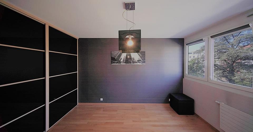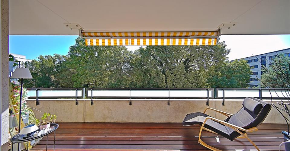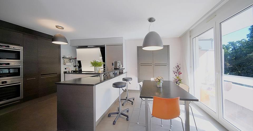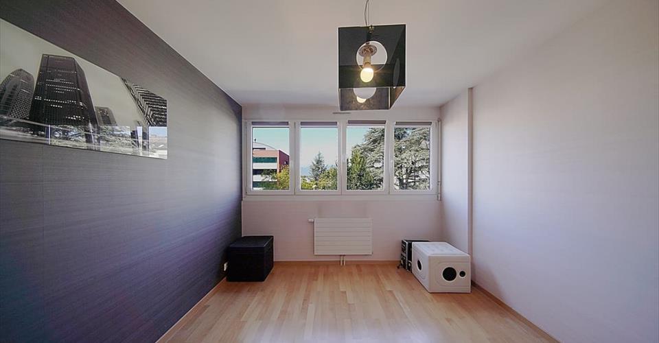 En exclusivité Situé dans le quartier de Chatelaine à Vernier, proche de toutes commodités, ce confortable appartement traversant de 118 m² PPE, au 2ème étage d’un immeuble construit en 2008, se présente ainsi : – une entrée donnant accès à : – un beau séjour s’ouvrant sur un large balcon de 18 m² avec vue sur un parc arboré de 1350 m², – une cuisine dinatoire toute équipée et ouverte sur le séjour et le balcon, – 3 grandes chambres dont une donnant sur le parc et avec un accès au balcon, – 1 salle de bains avec WC et double vasque, – 1 salle de douche avec WC, – un espace buanderie séparé. Il est complété par un dépôt (cave) de 8.46 m² et d’un box en sous-sol, tous 2 avec électricité. Ses autres atouts : – Cuisine : 3 fours (dont un vapeur), teppanyaki, bar, plan de travail en granit (noir absolu), nombreux placards, hotte, etc. – porte blindée, – store électrique au séjour, – balcon : sol en teck et toile de tente, – salles d’eau : toutes 2 équipées d’un sèche-serviette (reliés à la chaufferie et utilisables en mode électrique en intersaison). – immeuble de 5 étages, 2 appartements par palier. Les commerces, écoles et transports sont accessibles à pied. En plus du box, possibilité de louer une place de parc au bas de l’immeuble.