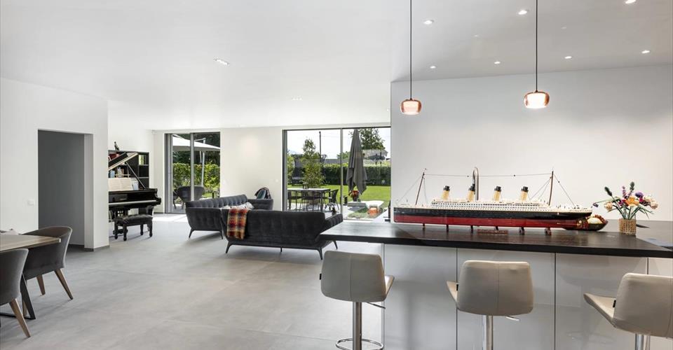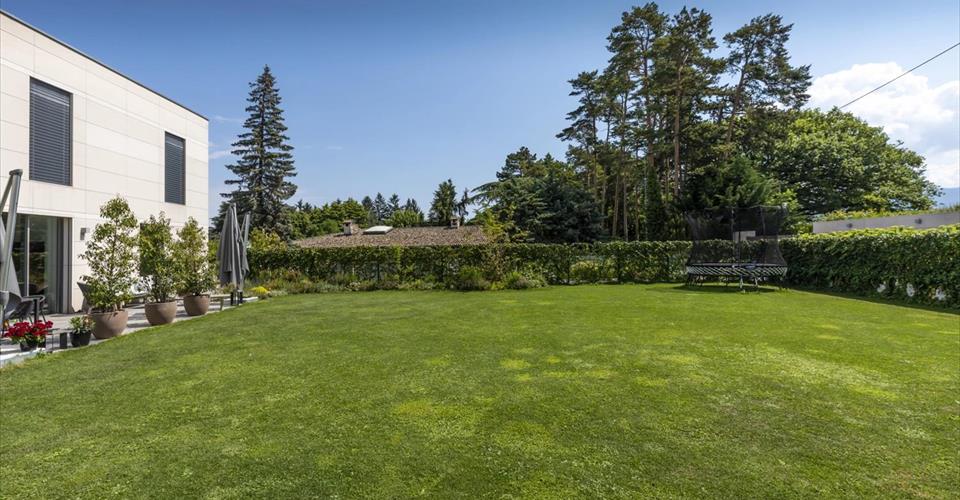 Cet appartement moderne, se situe dans une résidence exclusive de 9 logements avec piscine. D’une surface de 275 m2 pondérés il offre des finitions haut de gamme et une belle luminosité. L’appartement se compose d’un hall d’entrée avec vestiaire, toilettes visiteurs, vaste salon/salle à manger avec accès au jardin de 420 m2, très belle cuisine moderne entièrement équipée avec ilot central (appareils de qualité supérieure). Dégagement nuit comprenant 3 chambres à coucher chacune avec salle d’eau attenante et principale avec dressing. Une grande cave/buanderie. 3 places de parking à CHF 150.-/parking