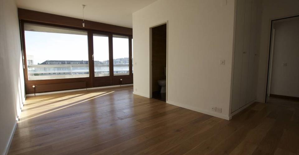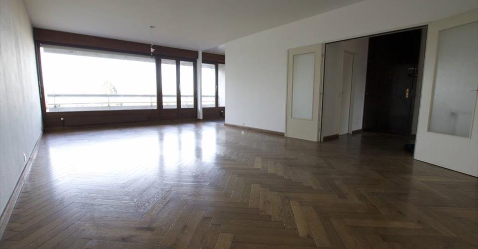 Spacieux appartement de 5 pièces de 151 m2 PPE au 7ème étage, sans vis-à-vis avec vue dégagée. Il se présente comme suit : Grand hall d’entrée avec placard, wc visiteurs, spacieux séjour d’environ 37 m2 avec balcon d’environ 13 m2, cuisine modernisée et entièrement équipée, 3 salles de bains dont une avec emplacement pour le lave-linge, 3 chambres à coucher (2 avec placards encastrés et 1 avec balcon) Immeuble sécurisé situé à proximité des commerces et des transports publics, ascenseur, cave. Provisions de chauffage et eau chaude CHF. 250.– par mois. Parking intérieur à CHF 250.– par mois en plus du loyer