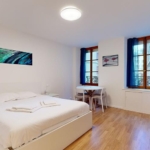 Attention bail à terme fixe jusqu’au 31.03.2028 logement comprenant un séjour avec balcon, un hall d’entrée, une buanderie équipée de branchements pour machine à laver, un WC séparé, une cuisine agencée et équipée (plan de cuisson, four, hotte et lave-vaisselle), ainsi qu’un couloir distribuant trois chambres : une chambre avec balcon, une seconde chambre, et une troisième chambre disposant d’une salle de douche attenante et d’un balcon. Le bien comprend également une salle de bain. Une cave est mise à disposition à titre gratuit et à bien plaire. Possibilité de louer un box au prix de Fr. 250.– par mois.