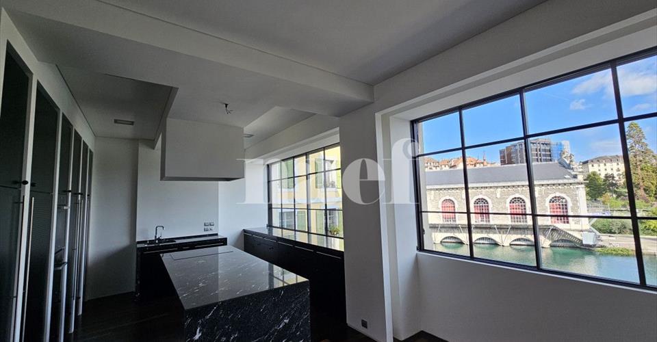 Situé au cœur de Genève, au 25 rue de la Coulouvrenière, ce loft de 5 pièces bénéficie d’un emplacement privilégié, dans un immeuble ancien en pierres taillées entièrement rénové et transformé. Offrant une surface d’environ 200 m², il séduit par ses volumes généreux et ses larges baies vitrées ouvrant sur une vue unique du Rhône et du Bâtiment des Forces Motrices. L’accès est sécurisé par caméras, interphone et clés électroniques, avec arrivée directe par ascenseur. L’appartement comprend une cuisine entièrement agencée et équipée, comprenant un four, un four vapeur, une grande plaque de cuisson, une hotte, un lave-vaisselle ainsi qu’un lave-linge et un sèche-linge, le tout de la marque Miele. Cette dernière est ouverte sur un vaste séjour, une chambre avec vue sur le Rhône avec salle de douche et toilettes en suite, une deuxième chambre à coucher avec salle de bains et toilettes en suite, ainsi qu’une salle de douche avec toilettes supplémentaire idéale pour les invités. Les prestations incluent un chauffage au gaz, des stores à projection électriques et une cave. Idéalement situé, le quartier de la Coulouvrenière offre un cadre de vie dynamique à deux pas du centre-ville. Les commerces de proximité, restaurants et services sont accessibles en quelques minutes à pied, tout comme les espaces culturels et de loisirs. Les lignes de bus et de tram à proximité immédiate facilitent les déplacements vers toutes les communes du canton et la gare Cornavin, tandis que les axes routiers principaux sont rapidement accessibles. Une place de parking intérieure est comprise dans le loyer.