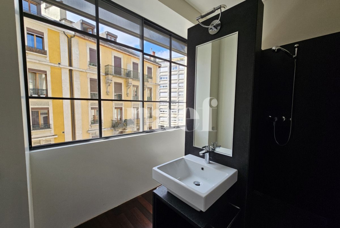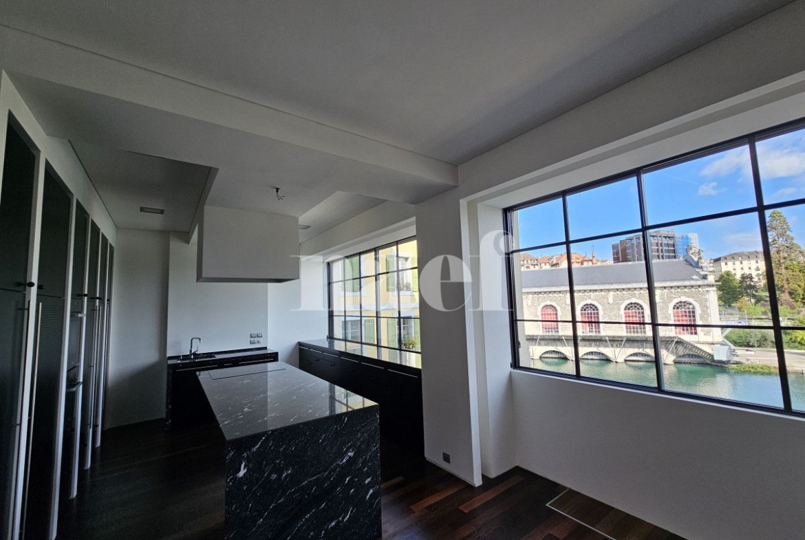 Situé au cœur de Genève, au 25 rue de la Coulouvrenière, ce loft de 5 pièces bénéficie d’un emplacement privilégié, dans un immeuble ancien en pierres taillées entièrement rénové et transformé. Offrant une surface d’environ 200 m², il séduit par ses volumes généreux et ses larges baies vitrées ouvrant sur une vue unique du Rhône et du Bâtiment des Forces Motrices. L’accès est sécurisé par caméras, interphone et clés électroniques, avec arrivée directe par ascenseur.