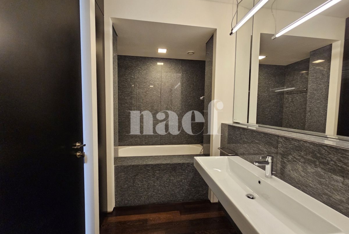 L’appartement comprend une cuisine entièrement agencée et équipée, comprenant un four, un four vapeur, une grande plaque de cuisson, une hotte, un lave-vaisselle ainsi qu’un lave-linge et un sèche-linge, le tout de la marque Miele….