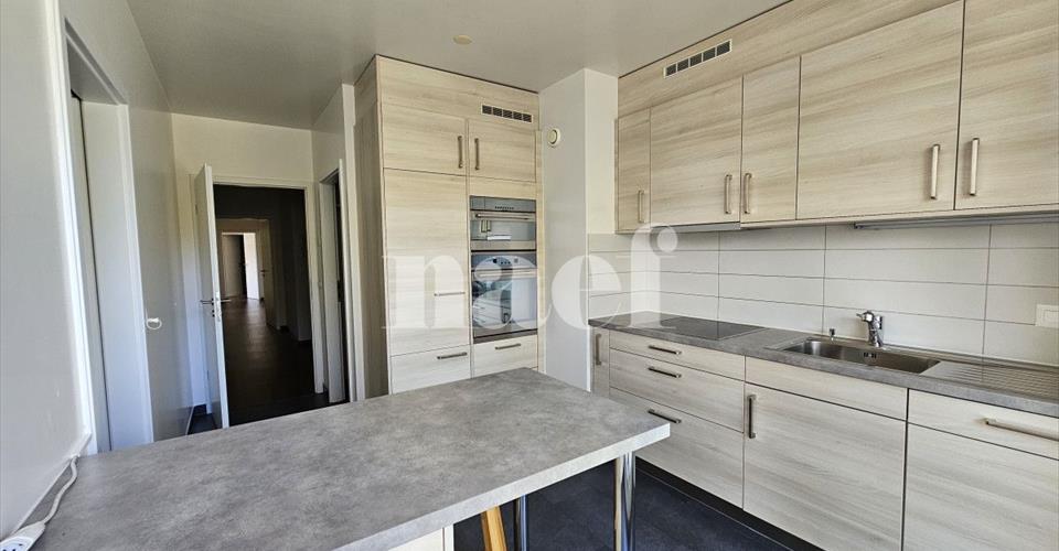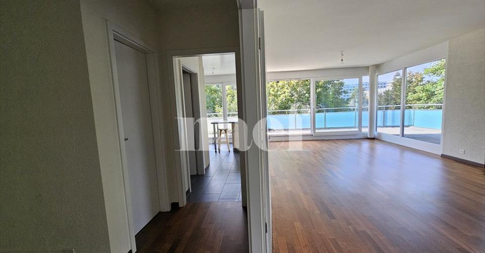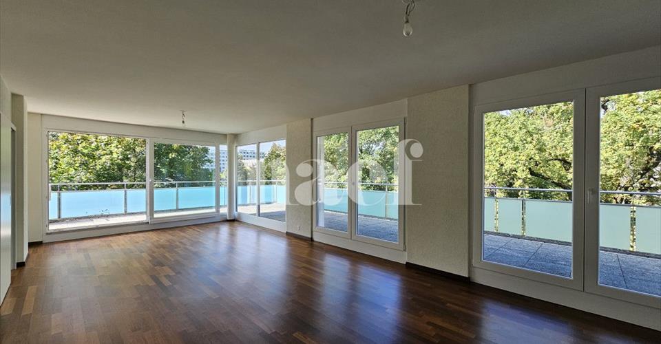Situé au calme, au bout d’un chemin sans issue, cet élégant appartement de 5 pièces, baigné de lumière, se trouve au dernier étage d’un immeuble en excellent état. Niché dans un cadre verdoyant, il bénéficie d’un environnement paisible tout en offrant une accessibilité optimale, que ce soit en voiture ou en transports en commun. L’arrêt de bus « Trembley », desservi par les lignes 3, 22 et 51, se situe à seulement 200 mètres, facilitant ainsi vos déplacements quotidiens. À proximité immédiate, vous apprécierez également la quiétude du Parc de Trembley, idéal pour vos balades, activités sportives ou moments de détente en famille. D’une surface habitable d’environ 138 m², ce logement offre un hall d’entrée avec armoires encastrées et toilettes visiteurs. La cuisine, moderne et entièrement équipée, s’accompagne d’un cellier pratique avec branchement pour lave-linge. Le séjour, spacieux et lumineux, s’ouvre sur une magnifique terrasse d’environ 80 m², exposée sud-ouest, offrant un espace extérieur rare et privilégié en attique, parfait pour profiter des belles journées et soirées en toute tranquillité. La partie nuit se compose d’un couloir desservant deux chambres à coucher d’environ 12 m² chacune, une salle de douche avec toilettes, ainsi qu’une suite parentale de près de 16 m² avec salle de bains privative. Le bien est complété par une cave, laissée à titre gratuit et à bien plaire, ainsi qu’une place de parking intérieure à CHF 180.- par mois, en sus du loyer, et un box à CHF 200.- par mois, en sus du loyer. N’hésitez pas à nous contacter afin d’organiser une visite.