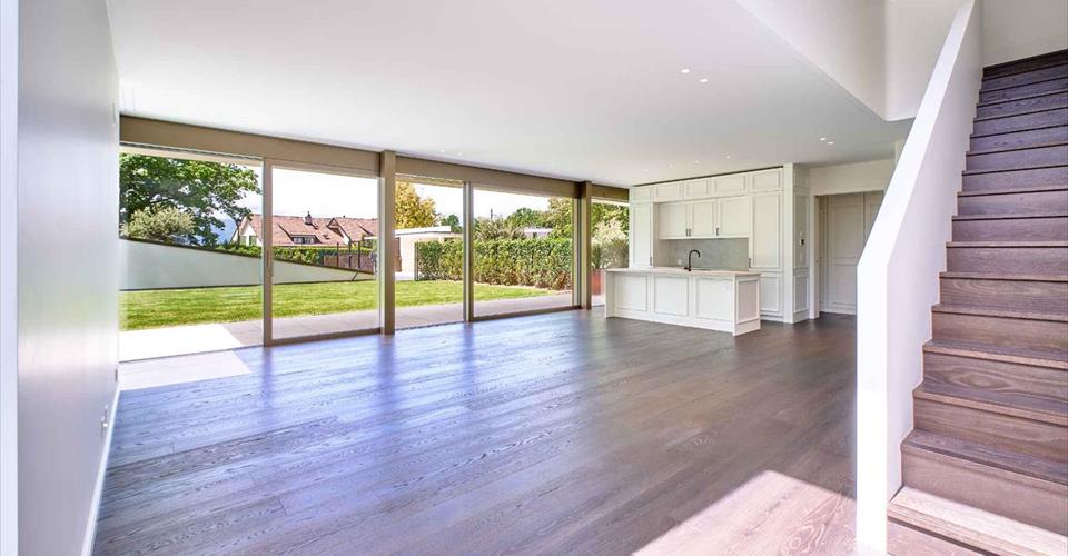 Un Écrin de charme entre Vignes et Léman : Perché au-dessus des rives du lac Léman, ce secteur résidentiel d’Hermance est un véritable havre de paix où l’authenticité rencontre l’élégance. Baigné de lumière et entouré de vignes, la situation de l’immeuble séduit par une atmosphère bucolique. La qualité de la construction et le souci apporté au choix des matériaux dans chaque appartement sont remarquables. Les aménagements extérieurs sont également très soignés et conçus avec beaucoup de goût. Les 4 appartements du rez-de-chaussée bénéficient tous de leur jardin privatif clos. Le 5ème en attique est le seul sur l’étage et offre une magnifique terrasse circulaire. Appartement N° A4 de 5 pièces en duplex au rez-de-chaussée d’env. 141 m2, jardin d’env. 178 m2 et terrasse d’env. 28 m2 au 1er étage. Il se compose ainsi : Au rez-de-chaussée : spacieux séjour donnant sur le jardin, cuisine entièrement équipée avec îlot central, vestiaire et toilettes visiteurs. Au 1er étage : 3 chambres à coucher donnant sur la terrasse, 1 salle de douche/wc attenante à la chambre principale, une salle de bains/wc, buanderie équipée. Une cave complète ce bien. L’entretien du jardin est compris dans le loyer. Provisions de chauffage / eau chaude : CHF. 300.– par mois Immeuble sécurisé, ascenseur. 2 parkings à disposition au sous-sol : CHF. 250.– chacun par mois en plus du loyer Les places de parking sont équipées de prises pour les véhicules électriques. Des prises ont également été installées dans le local à vélos. Une visite virtuelle 360 ° est disponible grâce à ce lien : https://360.feelestate.ch/view/fullscreen/id/VZ9TX