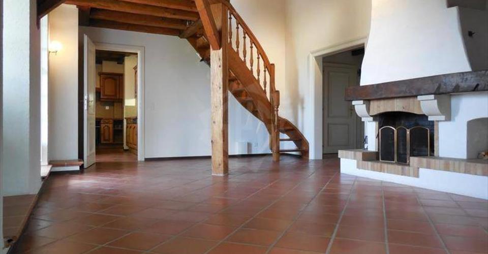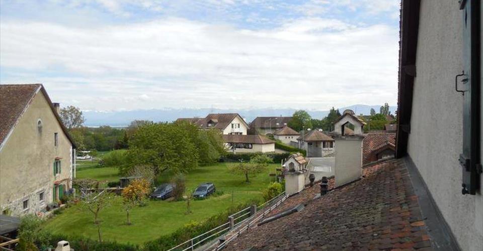 – Environnement campagnard – Situation privilégiée – Au 2ème étage – Cuisine équipée – Buanderie commune – Cheminée – Cachet – Bon état – Balcon – Chauffage au mazout – Entrée à convenir La ferme au Village Appartement charmant d’env. 160 m2 + balcon au 2ème étage d’une ferme rénovée avec soin à La Rippe, village d’env. 1000 habitants, début Vaud, 20 km de Genève, 8 km de Nyon, 528 mètres d’altitude, sur un plateau bordant le Jura, proche de l’abbaye de Bonmont. Aucune nuisance d’autoroute, trains, avions. Accès autoroute en 5 minutes. Cet appartement mansardé en duplex se décline comme suit : Un grand hall d’entrée avec armoires Une cuisine entièrement équipée (sol en terre-cuite) Un séjour avec cheminée et balcon Un coin à manger Trois chambre à coucher mansardées (parquet en chêne) Une salle de bain-wc Une salle de douche-WC Un réduit, une mezzanine ouverte sur le séjour Loyer : CHF 2’950.- + charges : CHF 190.- Garage fermé et une place de parc extérieur : CHF 150.- Forfait buanderie : CHF 60.- Disponibilité : 01.10.2025 En cas d’intérêt pour une visite, notre service de locations résidentielles est à votre disposition –