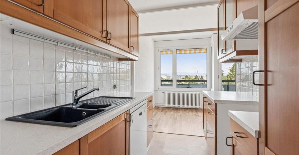 Charmant appartement de 5 pièces avec balcon, se situe au 6ème étage d’une copropriété, environnement calme et verdoyant. Il se compose comme suit : -Entrée -WC -Cuisine agencée semi équipée, ouverte sur coin à manger avec accès balcon -Salon avec accès au balcon -Trois chambres -Une salle de bain Le bail est d’une durée initiale de 3 ans renouvelable et le loyer échelonné dès la 4ème année de location à CHF. 3’080.-.