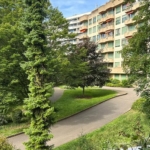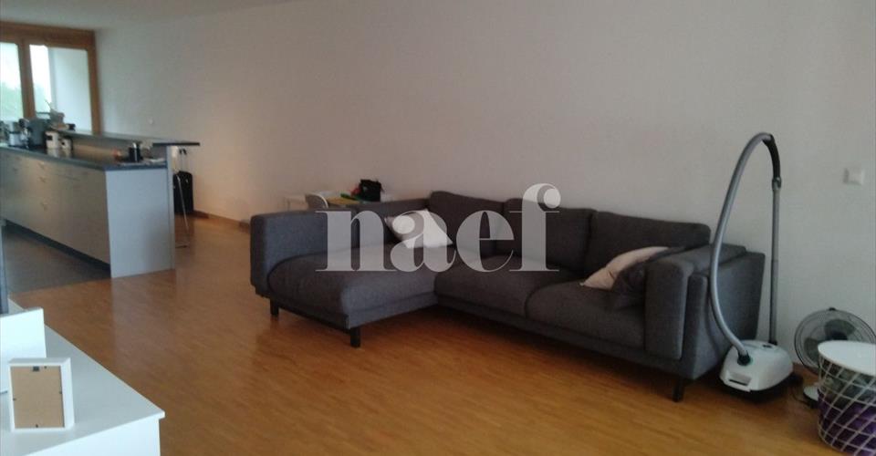 Bel appartement de 5 pièces au 1er étage, comprenant 2 chambres à coucher, une cuisine ouverte entièrement aménagée et équipée avec balcon, séjour/salle à manger donnant sur un grand balcon/loggia, une salle de bains-wc et une salle de douche-wc. Cave, buanderie commune, local à vélos, local à poussette. Place de parc extérieure en sus à Fr. 100.-.