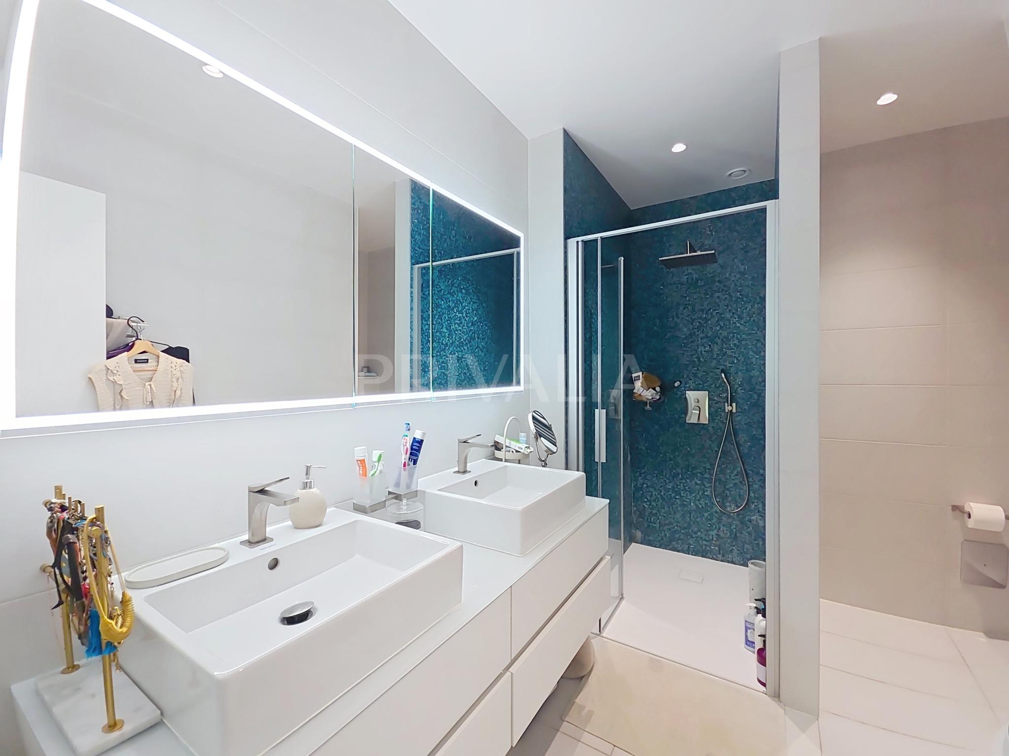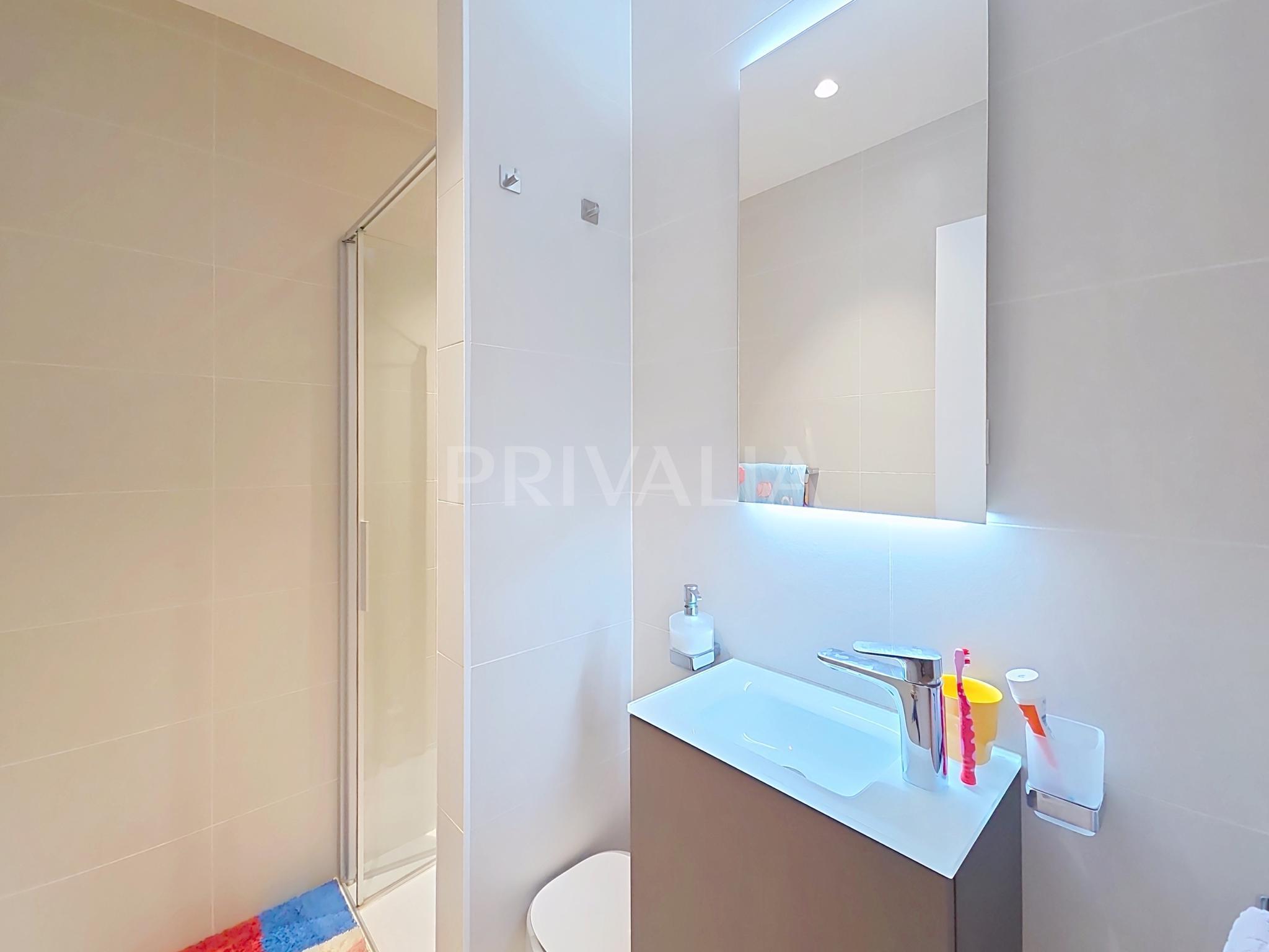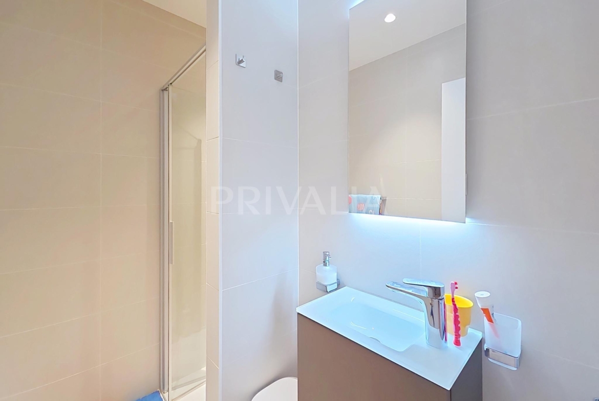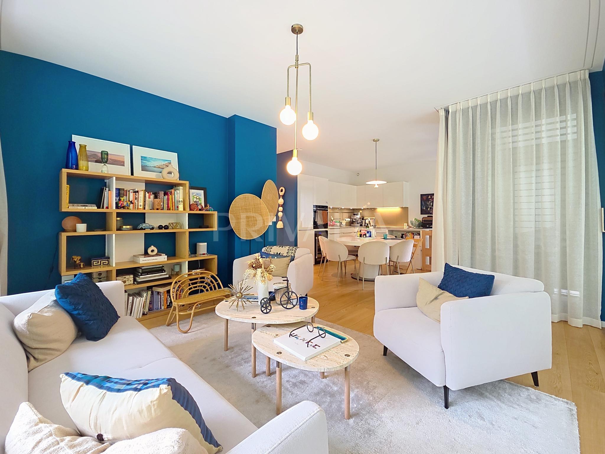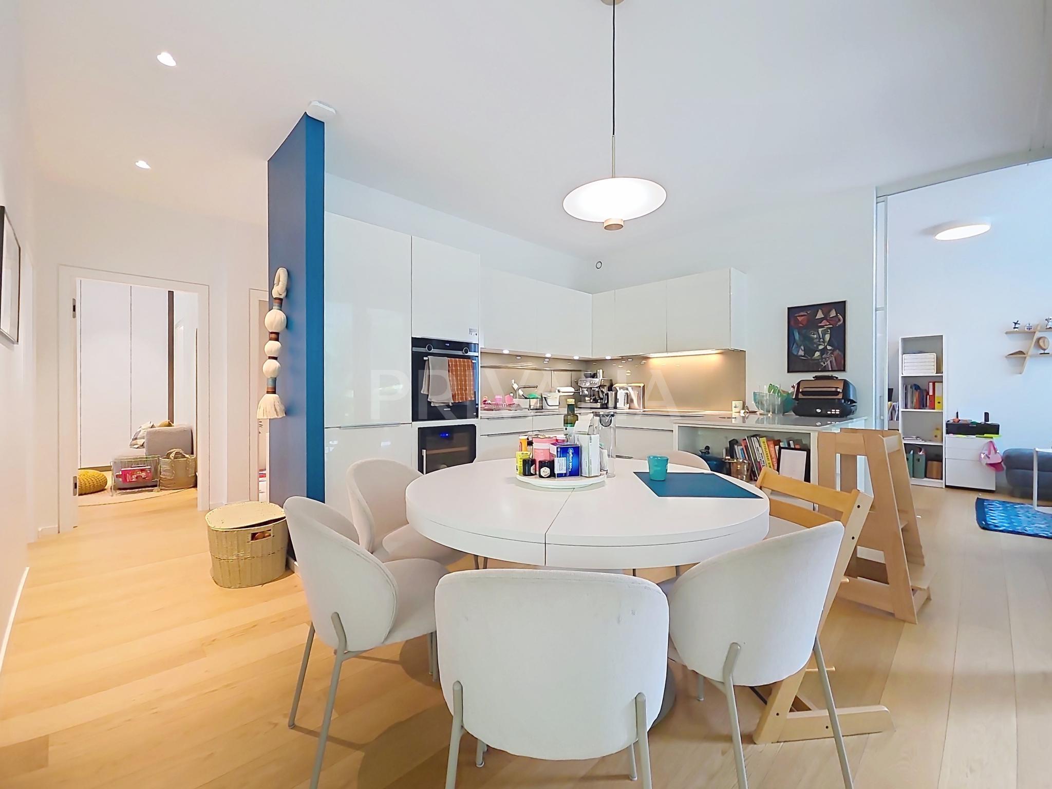 Au sein de la résidence contemporaine “Crêts de Pregny” sous le label THPE (très haute performance énergétique) et offrant une architecture contemporaine avec toiture végétalisée, cet appartement contemporain et fonctionnel dispose de beaux espaces et profite de matériaux de haute qualité tels qu’une cuisine ouverte entièrement équipée et agencée, salles d’eau modernes, parquet, stores électriques, chauffage au sol avec système “geocooling” ou encore baies vitrées coulissantes. Par ailleurs, il bénéficie d’une belle terrasse et d’un jardin d’environ 230 m2. Ce dernier est équipé d’un système d’arrosage automatique, d’une tondeuse électrique et de luminaires extérieurs.