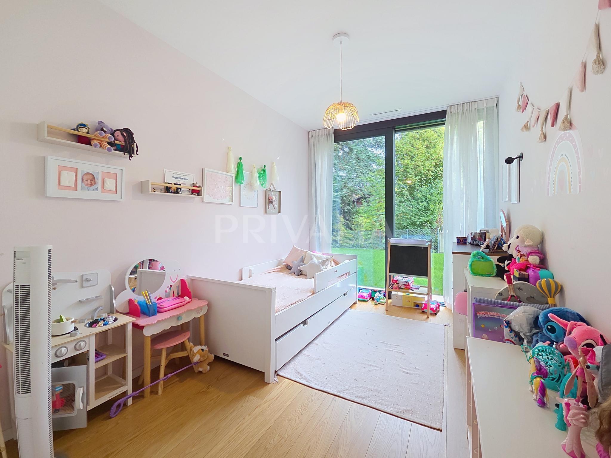 Situé au Grand-Saconnex, dans le secteur des Organisations Internationales, ce superbe appartement récent de 5 pièces en rez-de-jardin dispose environ 120 m2 habitables et offre un cadre de vie agréable et verdoyant au calme.