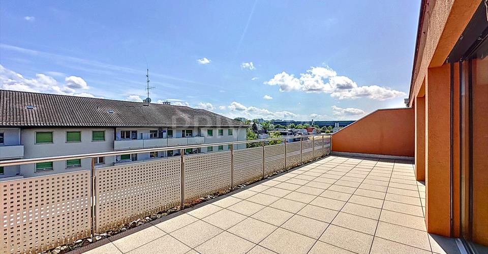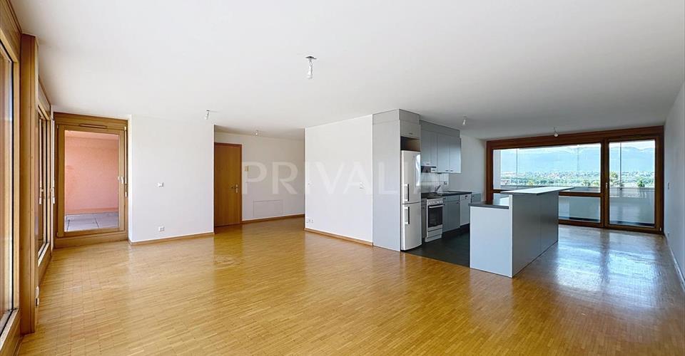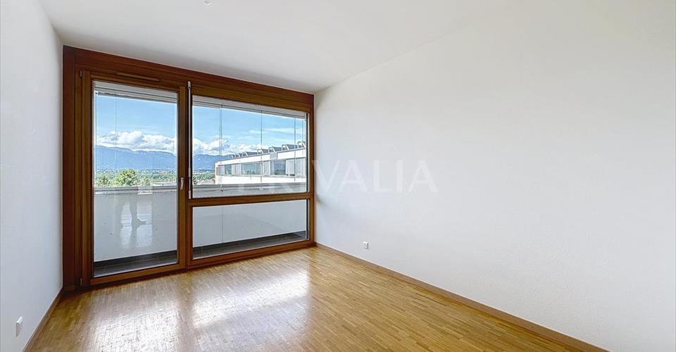Situé dans la commune du Grand-Saconnex, dans le secteur des Organisations Internationales, ce bel appartement en attique d’environ 103 m2 habitables offre un cadre de vie agréable avec ses 5 pièces, dont 2 chambres à coucher et un séjour spacieux. L’appartement, situé dans un immeuble moderne et sécurisé profite d’une grande terrasse. Il se distribue comme suit : – Hall d’entrée – Séjour / salle à manger avec accès balcon – Cuisine agencée et équipée – 2 chambres à coucher – Salle de bains avec WC – Salle de douche avec WC et raccordement pour lave-linge / sèche-linge Annexe : – Une cave – Buanderie commune Possibilité de louer une place de parking intérieure à CHF 160.- / mois (en sus). Les commodités sont à proximité immédiate (écoles, restaurants, centre commercial, poste, banque). L’appartement se trouve à 10 minutes des organisations internationales, à 10 minutes de l’aéroport et le bus n°5 ne se trouve qu’à 2 minutes à pied de l’immeuble. Le bus n°60 est desservi directement devant l’immeuble. Charges mensuelles en sus (CHF 300.-/mois)