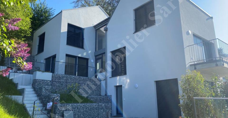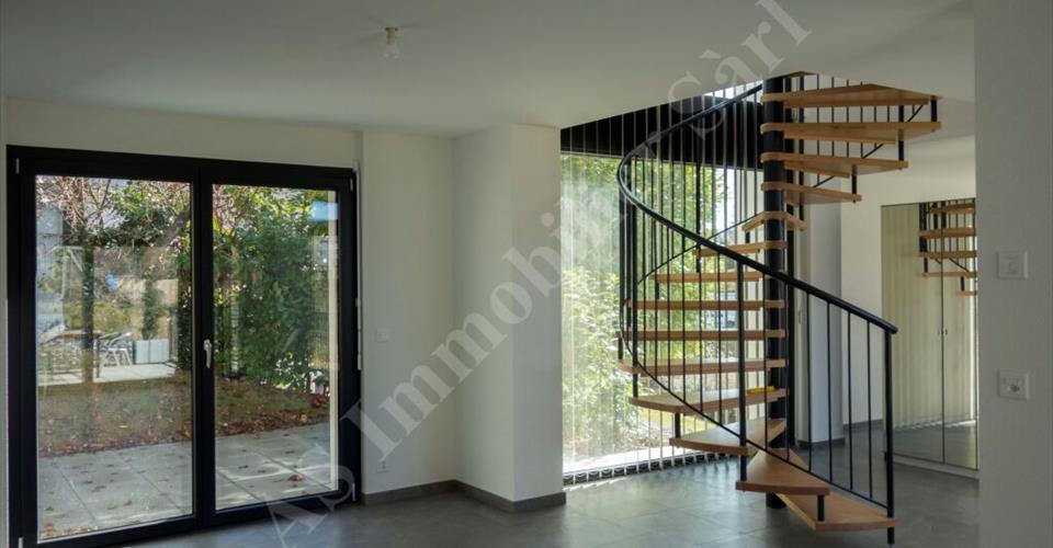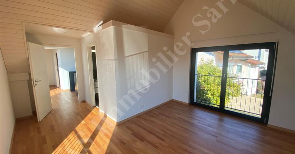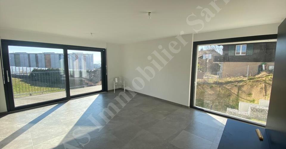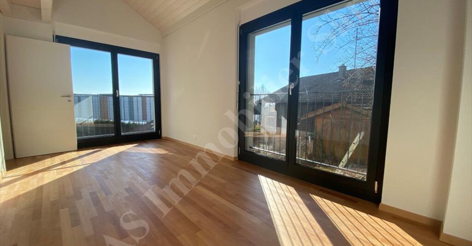 Magnifique duplex lumineux de 5 pièces dans une villa locative, proche de l’école internationale (ISL). Découvrez ce splendide appartement en duplex, moderne et lumineux, situé dans une villa locative de seulement deux logements. Idéalement placé à proximité de l’école internationale et des transports publics, il offre un cadre de vie confortable et spacieux. Disposition intérieure : Rez-supérieur : Entrée accueillante Vaste séjour de 26 m² avec accès à un balcon de 6 m² Cuisine ouverte entièrement équipée de 27 m², avec accès direct à deux terrasses Économat/buanderie WC visiteurs 1er étage : Dégagement avec espace de circulation Suite parentale de 26 m² avec salle de douche/WC Deux chambres de 14 m² chacune Salle de bains avec WC Espaces extérieurs : Deux terrasses idéales pour profiter des beaux jours Grande cave de 12 m² Deux places de parc en supplément : CHF 280.–/mois Confort & technique : Chauffage et eau chaude assurés par pompe à chaleur Disponibilité : Dès le 15 octobre 2025. Visites uniquement sur rendez-vous avec les locataires : 079