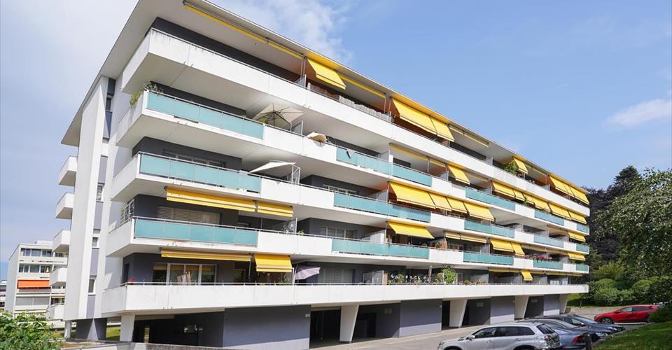 Dans un immeuble en copropriété, Ce logement traversant, se compose d’un hall d’entrée, cuisine équipée, salon, trois chambres dont une suite parentale, une salle de bains. Le logement dispose aussi d’une cave. Deux place de parking en sous-sol à CHF 160.00 chacune Ascenseur