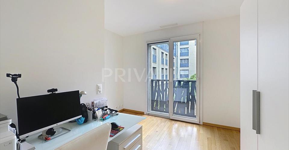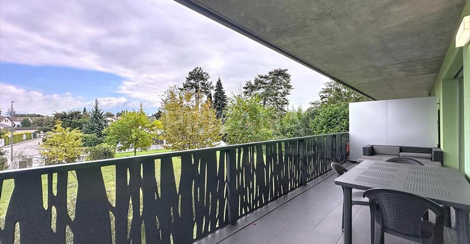 Situé au sein d’une résidence calme et moderne, ce bel appartement de 5 pièces se trouve au 1er étage et offre une surface d’environ 100 m2. Il dispose de 3 chambres à coucher et bénéficie d’une belle distribution fonctionnelle, idéale pour une famille. Entretenu avec soin, cet objet bénéficie de nombreux rangements encastrés et de prestations de qualité telles qu’une cuisine ouverte entièrement équipée avec électroménager Siemens haut de gamme, un système de chauffage au sol, des stores électriques, une porte blindée et des finitions soignées. En outre, il profite d’un balcon de 17 m2 avec moustiquaire intégré orienté à l’est avec une vue dégagée sur le Salève. Il se distribue comme suit : – Séjour / salle à manger lumineux, accès balcon – Cuisine ou ouverte entièrement équipée – Chambre parentale, accès balcon – Salle de bains avec WC et raccordement lave-linge – 2 chambres à coucher – Salle de douche avec WC et urinoir Un local à vélos sécurisé et une cave de 9 m2 viennent compléter l’ensemble. Idéalement situé à proximité immédiate de toutes commodités (commerces, restaurants, poste, banques, crèches etc.) proche de la piscine du Lignon et du Parc du Wellingtonia. Les centres commerciaux Balexert et du Lignon se trouvent à moins de 10 minutes en voiture. À quelques pas de l’arrêt de bus “Vernier, SIG Lignon” du n°9 et 51, permettant de rejoindre le centre-ville en moins de 15 minutes. Les axes autoroutiers se trouvent également à 5 minutes permettant d’accéder à l’aéroport en moins de 10 minutes.