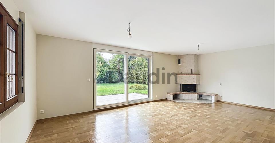 Cet appartement est situé dans un quartier résidentiel calme, sur la Commune de Vessy, à quelques minutes de Carouge et de ses commodités. Il offre un espace de vie d’env. 148 m2 composé d’une grande entrée avec armoires, de 3 chambres dont une chambre parentale avec dressing et salle de bains privative, d’une salle de douche, d’une cuisine équipée avec cellier, d’un salon avec cheminée. Un magnifique jardin ensoleillé et arborisé d’env. 700 m2 est accessible de plain-pied. Une place de parking sous couvert ainsi qu’une grande cabane de jardin/cave font partie de la location.