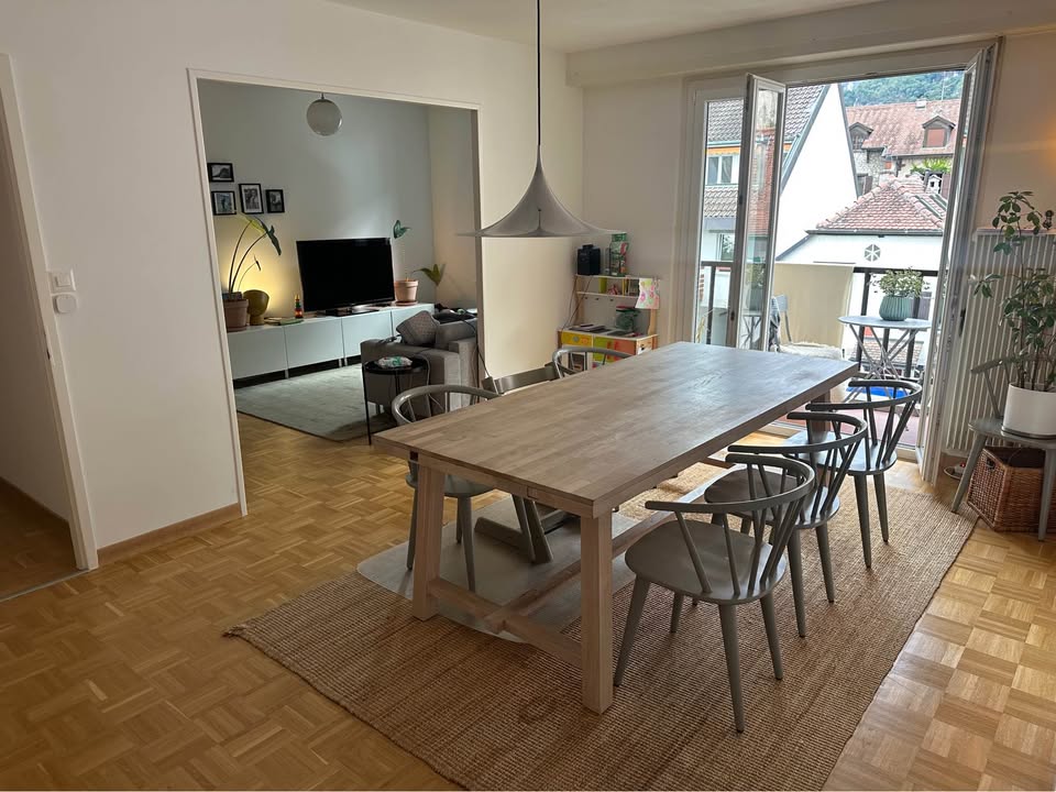 Agence de relocation – Foxhomes Spacieux appartement avec la plus belle vue de Genève – Disponible dès le 1 novembre. Reprise du bail jusqu’au 30 avril 2027. Puis renouvellement annuel. Emplacement : Veyrier, Genève Surface : 90m² Étage : 2e étage Pièces : 3 chambres Loyer Loyer mensuel : 2800.– Charges : + 200.– +250.- Garage : + 200.– Disposition & Caractéristiques 1 hall d’entrée 1 salle à manger 1 salon 1 cuisine entièrement rénovée (possibilité d’y installer une machine à laver) 1 salle de bain (douche + lavabo) 1 WC séparé 1 réduit / débarras 4 grandes armoires intégrées 1 balcon 1 grande cave (espace de stockage privé au sous-sol) 1 BOX/GARAGE Espaces communs : local à vélos et buanderie partagée au sous-sol Pas d’ascenseur