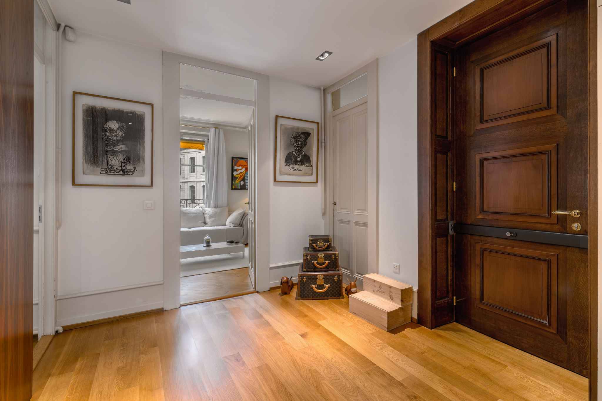 Le vaste hall d’entrée, équipé d’une armoire, distribue les pièces de vie côté rue avec une orientation Sud/Ouest et la partie nuit donnant sur la cour intérieure, à l’abri des nuisances.