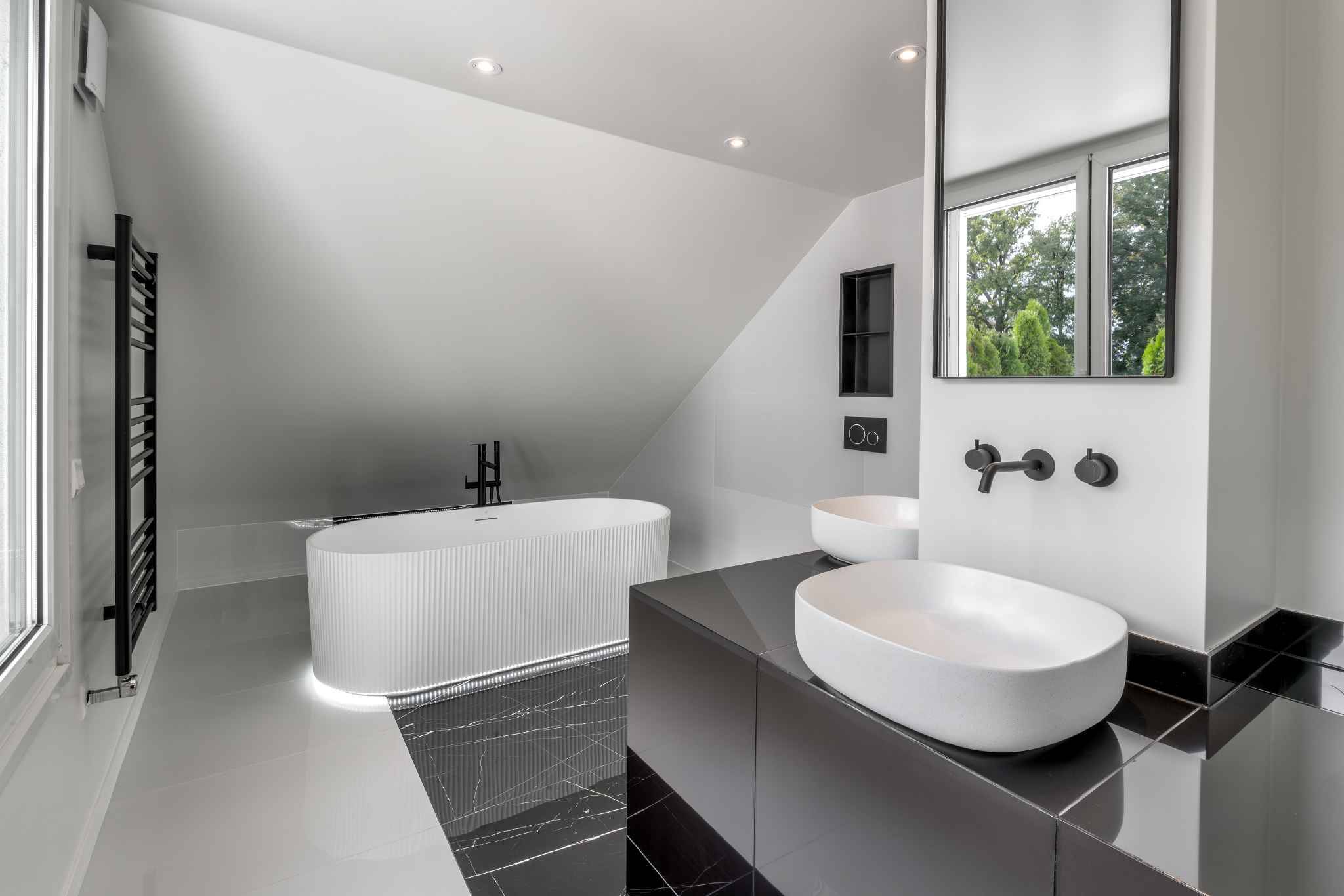 Au 1er étage, vous découvrirez un spacieux hall d’entrée, des toilettes visiteurs avec dressing ainsi qu’une magnifique cuisine avec îlot central entièrement équipée. Le vaste séjour/salle à manger s’ouvre sur une loggia avec vue sur le parc et constitue un espace de vie lumineux et convivial. Deux grandes chambres avec leur salle de bains et douche attenante complètent ce niveau.
