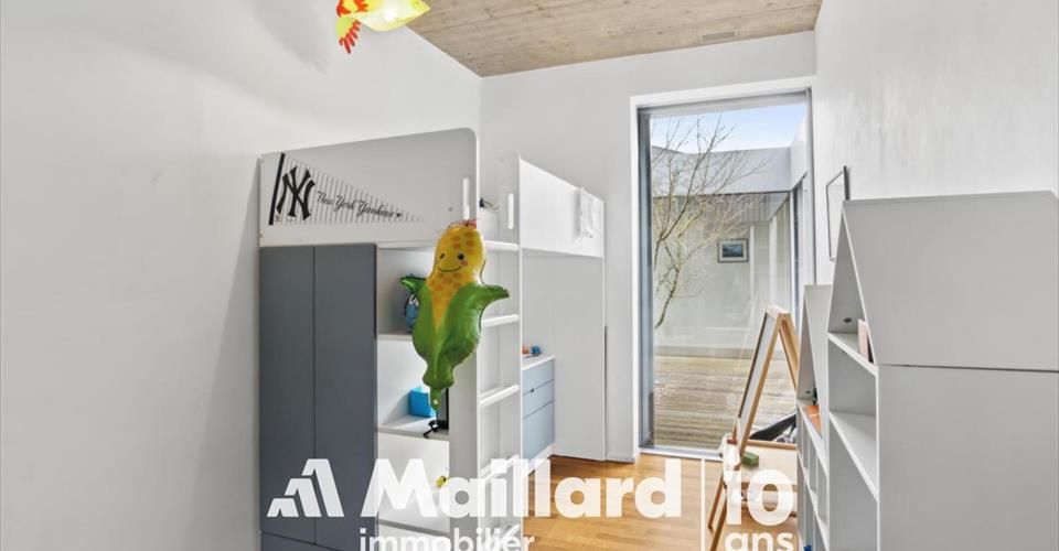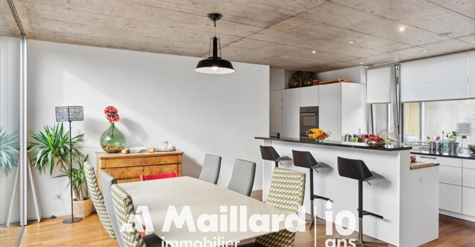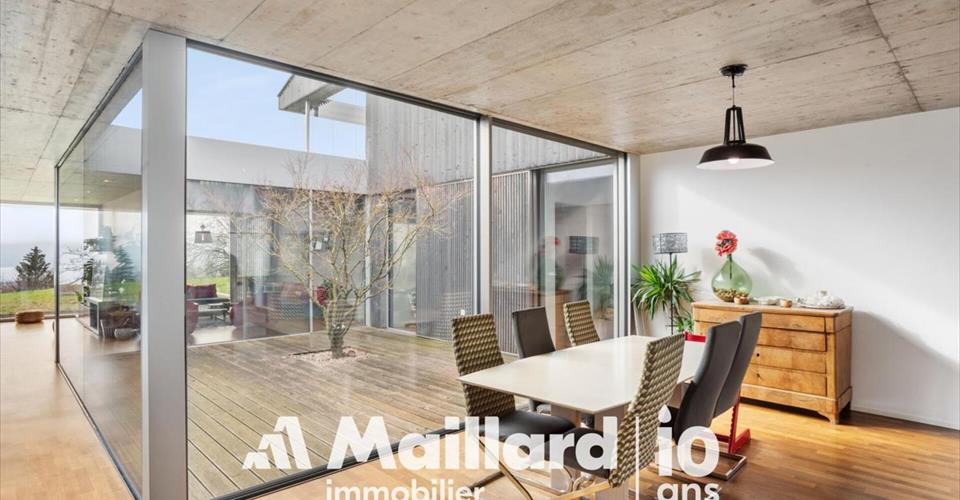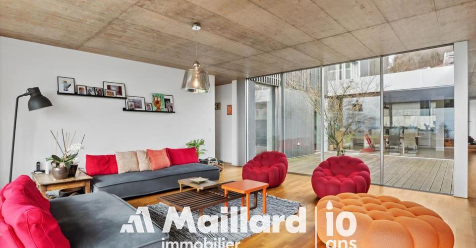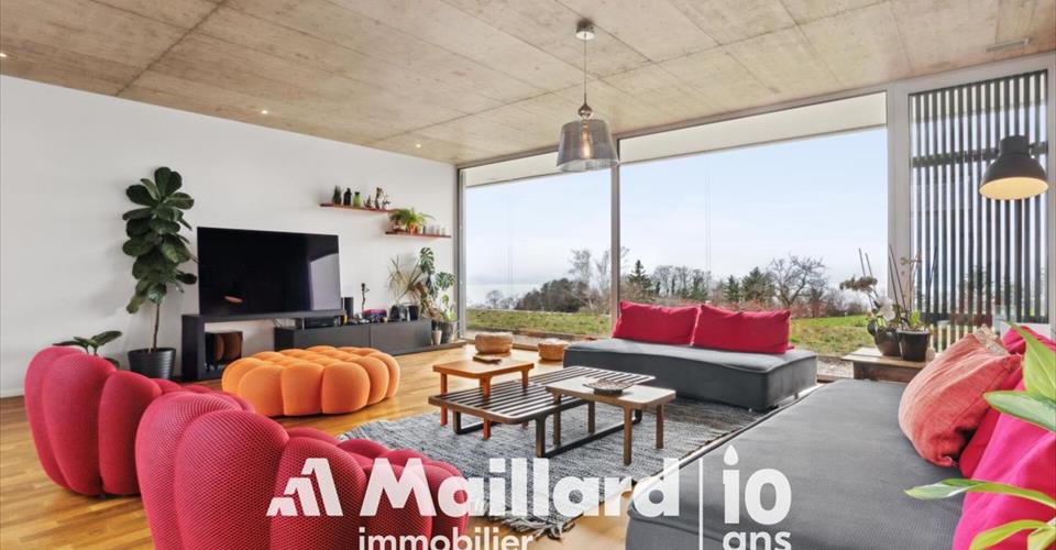 Découvrez ce somptueux appartement contemporain de 208 m², offrant des prestations de haute qualité et un confort exceptionnel. Situé dans un environnement privilégié, il bénéficie d’une superbe vue panoramique sur le lac et d’une luminosité optimale grâce à ses larges baies vitrées. Malgré sa proximité avec l’autoroute, aucune nuisance sonore n’est perceptible, offrant ainsi un cadre de vie paisible. L’espace de vie se compose d’un vaste séjour accueillant, d’une cuisine moderne entièrement agencée avec des équipements haut de gamme et d’un coin repas convivial. Une terrasse spacieuse ainsi qu’un patio central apportent une touche d’élégance et permettent de profiter pleinement des beaux jours. L’appartement comprend 5 chambres à coucher, dont une suite parentale avec sa propre salle de bain privative. Deux autres salles de bain contemporaines viennent compléter cet espace de vie, garantissant confort et intimité pour toute la famille. Pour votre confort, ce bien d’exception offre également deux places de parc couvertes avec un grand réduit ainsi qu’une cave privative. L’ensemble de la PPE est certifiée Minergie, assurant une efficacité énergétique optimale et un confort thermique tout au long de l’année. Ne manquez pas cette opportunité rare d’acquérir un appartement d’exception dans un cadre idyllique. Contactez-nous pour organiser une visite et laissez-vous séduire par ce lieu unique ! Contact : Jean-Ephrem Ody