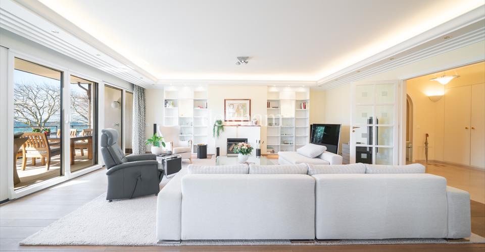 Découvrez ce magnifique, lumineux et spacieux appartement de standing d’une surface de 264 m² PPE à la situation exceptionnelle au cœur du Bourg de Lutry et en premier front de Lac. Ce bien d’exception bénéficie d’un environnement rare et privilégié sans nulle autre pareil dans la région lausannoise. Baigné de lumière grâce à son exposition plein sud, cet exceptionnel appartement offre une vue imprenable sur le lac Léman. L’espace de vie de 77 m², comprenant un vaste salon et une salle à manger, s’ouvre sur un grand balcon orienté face au lac et à 50 mètres des rives à cela s’ajoute la spacieuse et élégante cuisine de 20 m² qui est le complément idéal de l’espace à vivre. Les trois suites, qui disposent toutes d’un balcon sont un atout indéniable et offrent une privacité absolue. Volumes généreux, distribution fluide, prestations de qualité : cet appartement réunit raffinement, calme, situation et vue exceptionnelle “pied dans l’eau” à deux pas de Lausanne. En outre, il est possible d’acquérir 3 places de parc intérieures à CHF 80’000.00/unité en sus du prix. Pour toute information complémentaire ou pour organiser une visite privée, n’hésitez pas à nous contacter. C’est avec plaisir que nous vous présenterons ce bien unique !