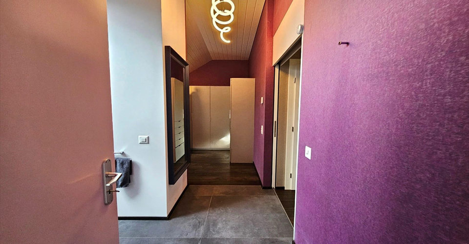 Dans un cadre verdoyant et raffiné, ce duplex moderne et design de 6.5 pièces en attique, orienté sud, sud-est et ouest, bénéficie d’un emplacement idéal au coeur de la prisée région de Terre-Sainte, sur La Côte. Possibilité de transformation en 8.5 pièces. Les matériaux utilisés sont d’une qualité exceptionnelle, notamment le revêtement de sol en Shou Sugi Ban. L’appartement offre des finitions haut de gamme. La surface des surcombles permet la création de deux chambres supplémentaires. Distribution : Combles : Hall d’entrée avec armoire Séjour et coin à manger, accès à deux terrasses Cuisine ouverte équipée Suite parentale avec salle de bains au design italien, pièce entièrement dédiée à un dressing luxueux, équipé de placards intégrés sur toute la longueur du mur (possibilité de transformer cette pièce en chambre à coucher), accès à l’une des terrasses Deux chambres à coucher avec accès à l’une des terrasses, avec mezzanine dans chacune des chambres Salle de bains Réduit Salle de bains, buanderie Surcombles : Chambre à coucher Salle de bains Bureau Cave privative N°2.1 Box intérieur avec porte automatique N° 3, en sus à Fr. 75’000.- Possibilité éventuelle d’acquérir un second box A disposition gratuitement, grande buanderie d’env. 60m2 avec séchoir Chauffage au sol par pompe à chaleur Panneaux solaires