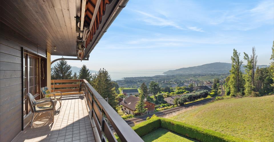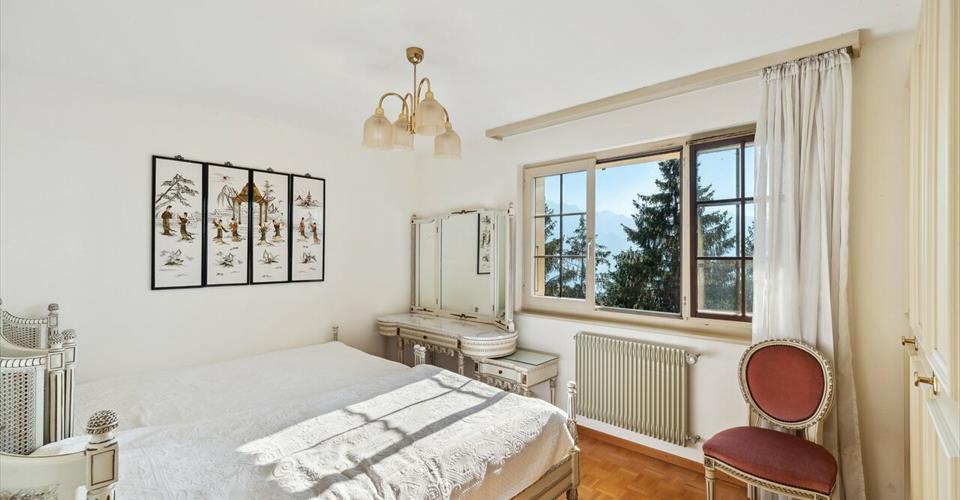 Situé au sein du village de Chernex/Montreux, connu pour sa douceur de vivre et son panorama exceptionnel, ce spacieux appartement occupe le 3ème étage d’un immeuble au sein d’un cadre verdoyant. Son emplacement est idéal pour les personnes désirant bénéficier d’une grande proximité avec la ville de Montreux ainsi que de ses nombreux commerces, tout en résidant dans un quartier tranquille, avec vue plongeante sur le Léman. Une vraie bouffée d’air frais ! – Vue imprenable sur le lac ainsi que sur les montagnes environnantes – Arrêt du MOB à 700 mètres de la résidence – Généreux volumes avec une pièce à vivre de plus de 90 m² – Séjour convivial agrémenté d’une cheminée – 2 balcons, 3 caves et 1 garage box Prix de vente de l’appartement : CHF 1’560’000.- Prix du garage box : CHF 35’000.- Prix de vente total : CHF 1’595’000.-