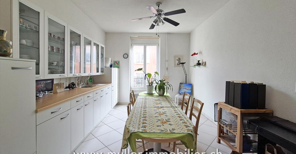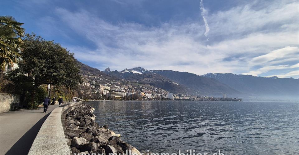 Appartement rénové de 6,5 pièces, situé au 1er étage d’un immeuble de 1920. Idéalement situé à 1 min à pied du bord du lac Léman, sur la commune de Clarens. À proximité immédiate de Montreux, à 4 min de la sortie d’autoroute. CONFORT Bord du lac à deux pas Bon ensoleillement Dans l’angle du bâtiment Orienté sud, sud-ouest Poêle à bois Pièces : 6,5 Surface habitable : env. 125 m2 Construction : 1920 Rénové entre 1990 et 2013 Chauffage au gaz, chaudière centrale 1 place de parc extérieure en sus, à louer Disponibilité : à convenir ACCÈS À 1 min à pied du bord du lac À 4 min de l’autoroute (Montreux) À 12 min de Vevey À 25 min de Lausanne Transports publics À 2 min à pied de l’arrêt de bus 1ER NIVEAU Hall d’entrée, WC visiteurs, réduit, cuisine semi-fermée entièrement agencée et rénovée récemment, salle à manger, grand salon dans l’angle du bâtiment avec poêle à bois, 4 chambres, salle de bain et une salle de douche. Petit balcon accessible depuis le salon. AMÉNAGEMENTS EXTÉRIEURS Une place de parc à louer, réservée pour l’appartement, dans le parking attenant à l’immeuble. SITUATION À deux pas du lac, il suffit de traverser la route à pied pour accéder au quai de Clarens. Vous rejoignez le centre de Montreux en 5 minutes en transports publics. PARTICULARITÉS L’immeuble de 1920 a conservé son cachet avec les escaliers intérieurs en pierre et les hauts plafonds. L’immeuble est en cours de rénovation. La route est en zone 30km/h de 22h à 6h, permettant de dormir la fenêtre ouverte sans bruit gênant. Fenêtres changées, en PVC double vitrage. REMARQUE Très rare, sa situation à deux pas du lac et les 4 chambres rendent cet appartement idéal pour une famille, souhaitant allier le confort et la vie sur la Riviera, à proximité immédiate de Montreux.