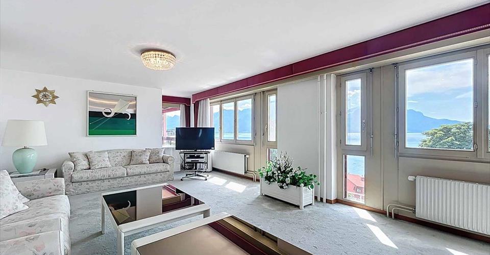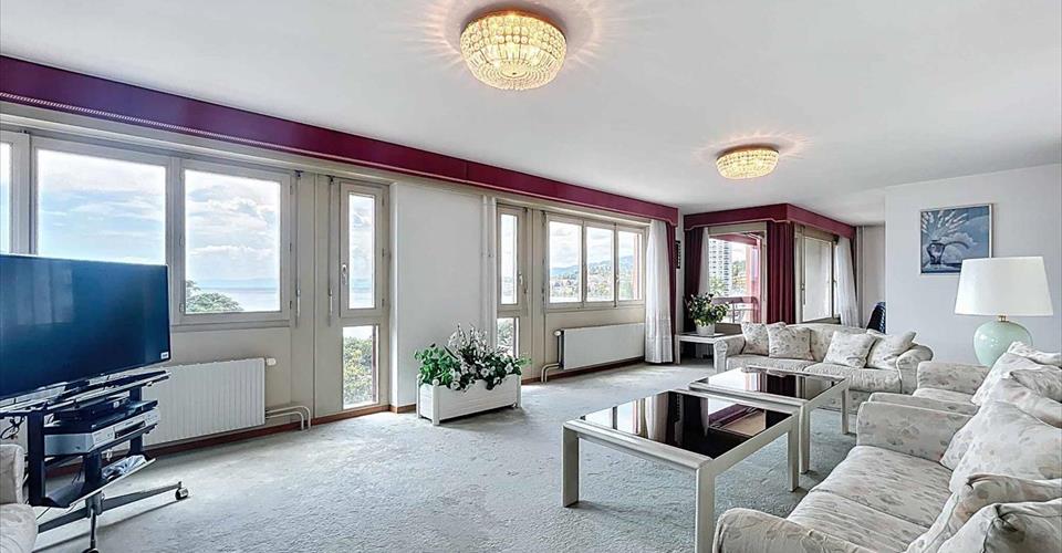 Appartement avec grand potentiel après rénovations de 6.5 pièces d’environ 218 m² pondérés (211 m² habitables et deux balcons totalisant 12.30 m²). Idéalement situé au 7? étage, au cœur de Montreux et face aux quais, cet appartement bénéficie d’un emplacement privilégié, à proximité de toutes les commodités telles que les commerces, les écoles, les restaurants et les transports publics. Grâce à son orientation face au lac et à ses nombreuses fenêtres, il profite d’une luminosité optimale tout au long de la journée, ainsi que d’une vue imprenable sur le lac Léman et les montagnes. Une grande cave privative complète ce bien.