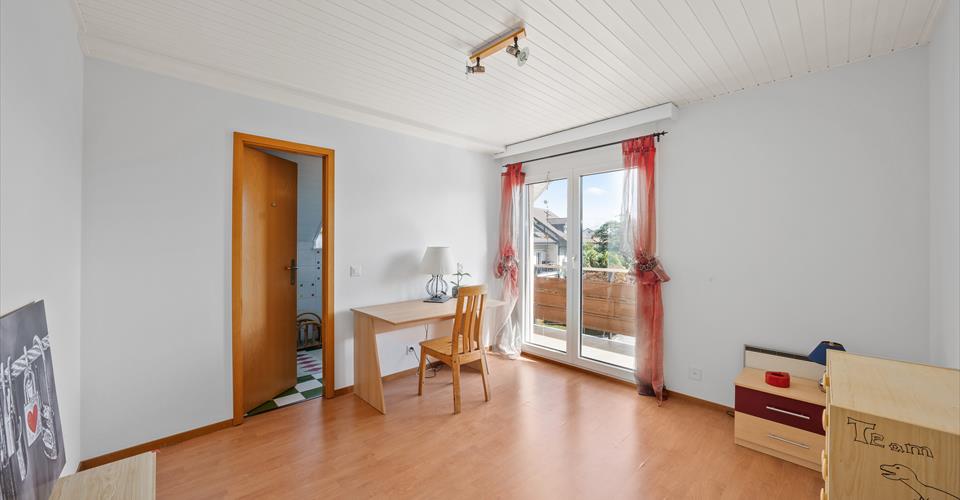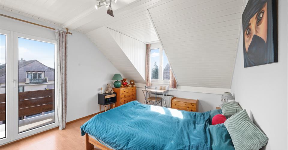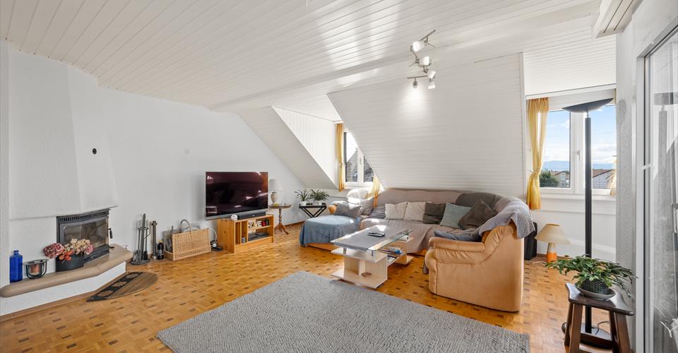 Spacieux appartement de 5.5pces, agrémenté de surcombles d’env. 70 m2, idéal pour une famille ou pour ceux qui cherchent de beaux volumes. 4 chambres + surcombles 2 salles d’eau Cuisine entièrment équipée Séjour avec cheminée avec accès au balcon-terrasse 1 garage fermé et 2 places de parc extérieures (en sus du prix)