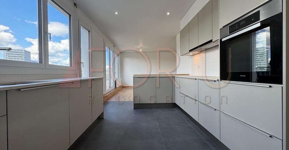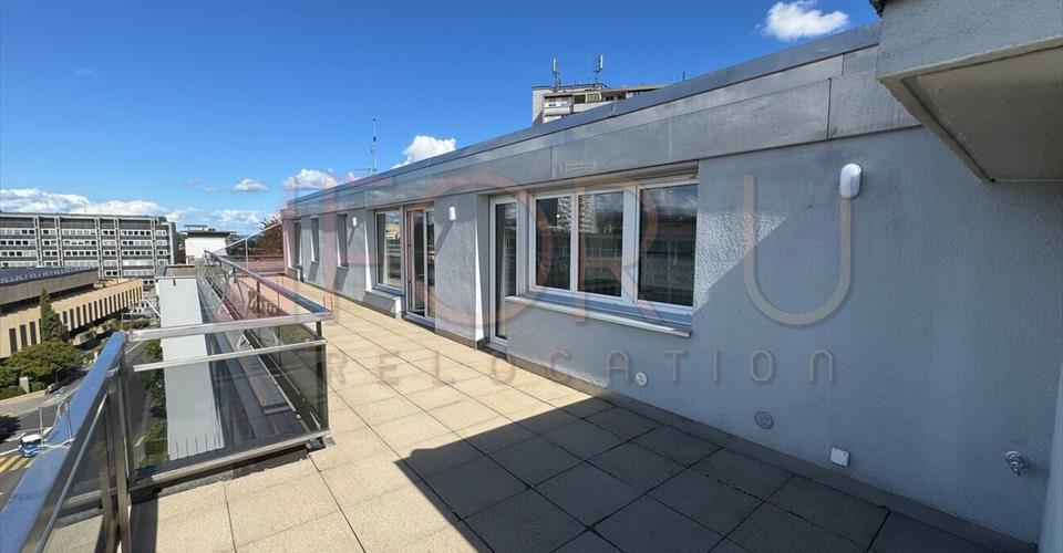 WWW.FORURELOC.COM 6.5 pièces, attique (7e étage, dont 1 à monter) • appartement très lumineux et traversant d’env. 159 m² entièrement refait à neuf • 102 m² de terrasses (55 m² Est + 47 m² Ouest) avec vue sur le jet d’eau et les montagnes • hall d’entrée avec emplacement pour armoire (5 m²) • vaste salon / salle à manger (46 m²) • cuisine ouverte avec bar (15 m²) entièrement agencée et équipée (lave-vaisselle incl.) • 4 chambres (17, 16, 15 et 11 m²) • salle de bain avec lavabo • salle de douche avec double vasque • 3 WC séparés • buanderie privative avec lavabo et puits de lumière • 2 réduits (côté cuisine 4 m² avec frigo américain et côté chambres 3 m²) • cave • diverses possibilités de parking dans les environs (séparément) L’ascenseur monte jusqu’au 6e étage; il faut ensuite monter 1 étage à pied. Visite virtuelle en vidéo sur le lien suivant: https://youtu.be/5ScsZHsw42U Loyer: CHF 6’500.– + 300.– (charges) Disponible de suite Conditions de location